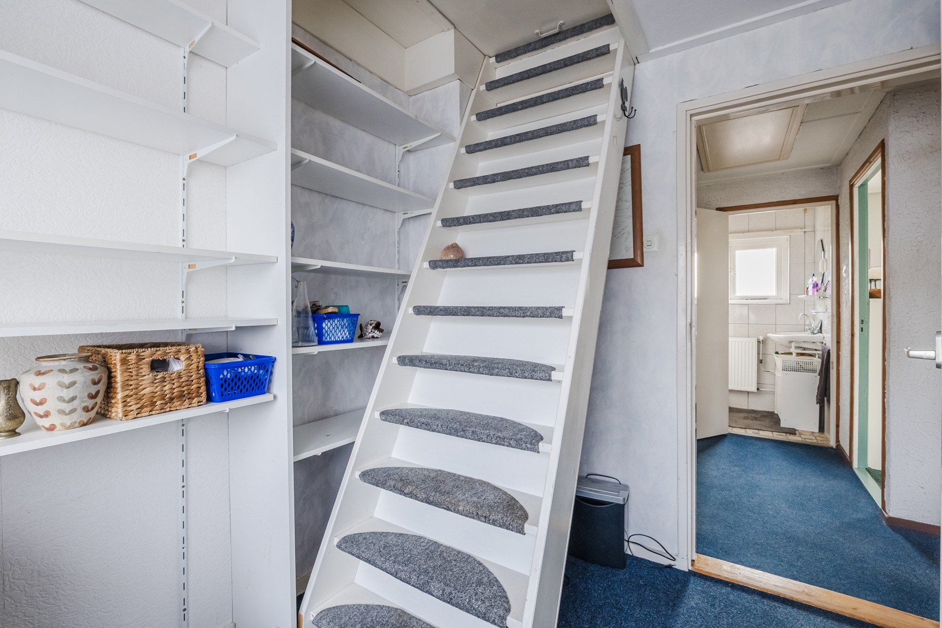 Bevloerde zolderruimte bereikbaar met vaste trap.