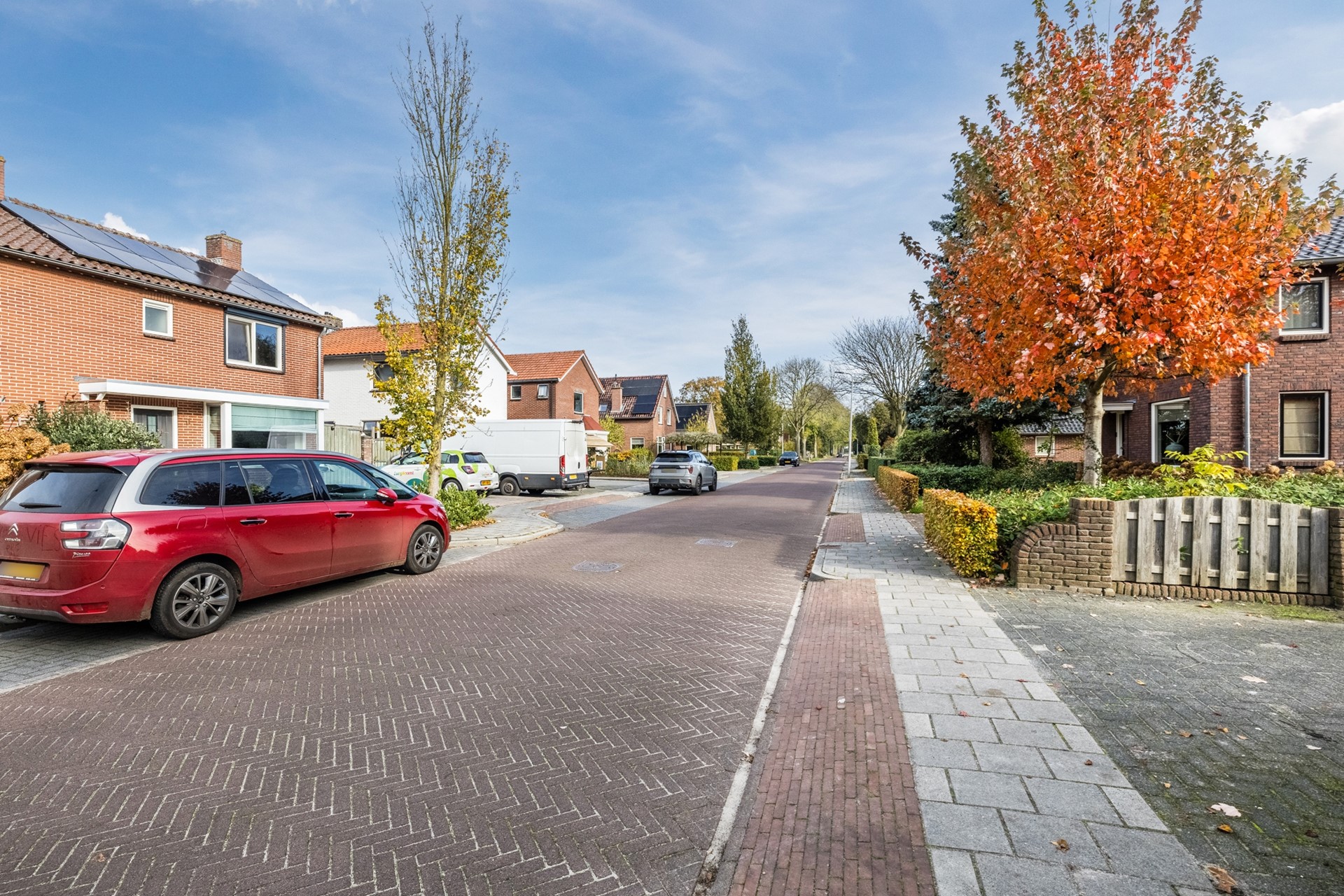 Enkele wetenswaardigheden; - Zeer ruime kavel van maar liefst 535 m² eigen grond; - Diepe achtertuin met vrije ligging aan de achterzijde en veel privacy; - Vrijstaande stenen garage; - Stenen schuur met opstelplaats voor wasmachine/droger en cv-installatie; - 3 slaapkamers aanwezig; - Lichte woonkamer met houtkachel en erker; - Gunstig gelegen nabij voorzieningen zoals openbaar vervoer, school, kinderopvang en Kulturhus 't Trefpunt; - Kortom: een fijne (gezins)woning met veel ruimte om het huis!