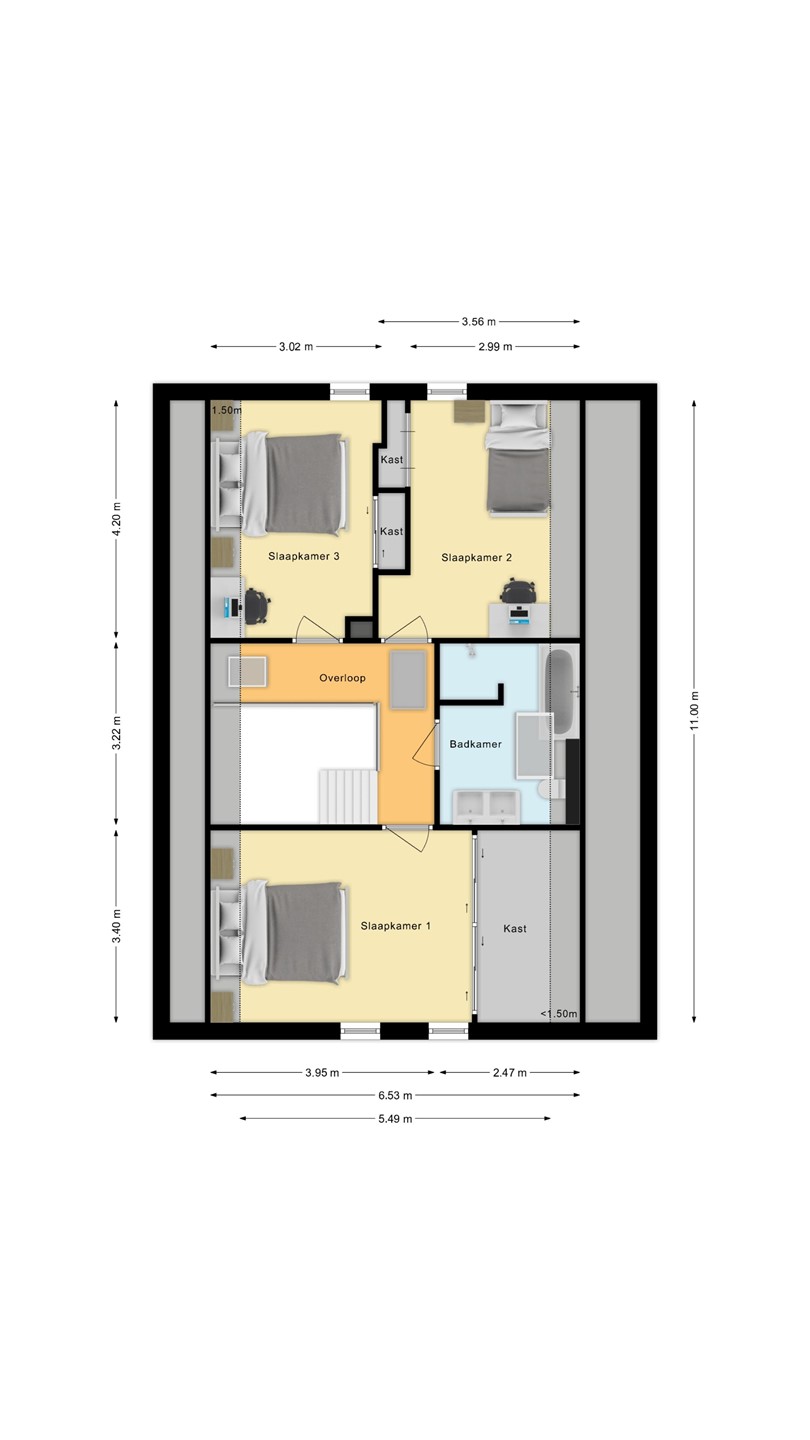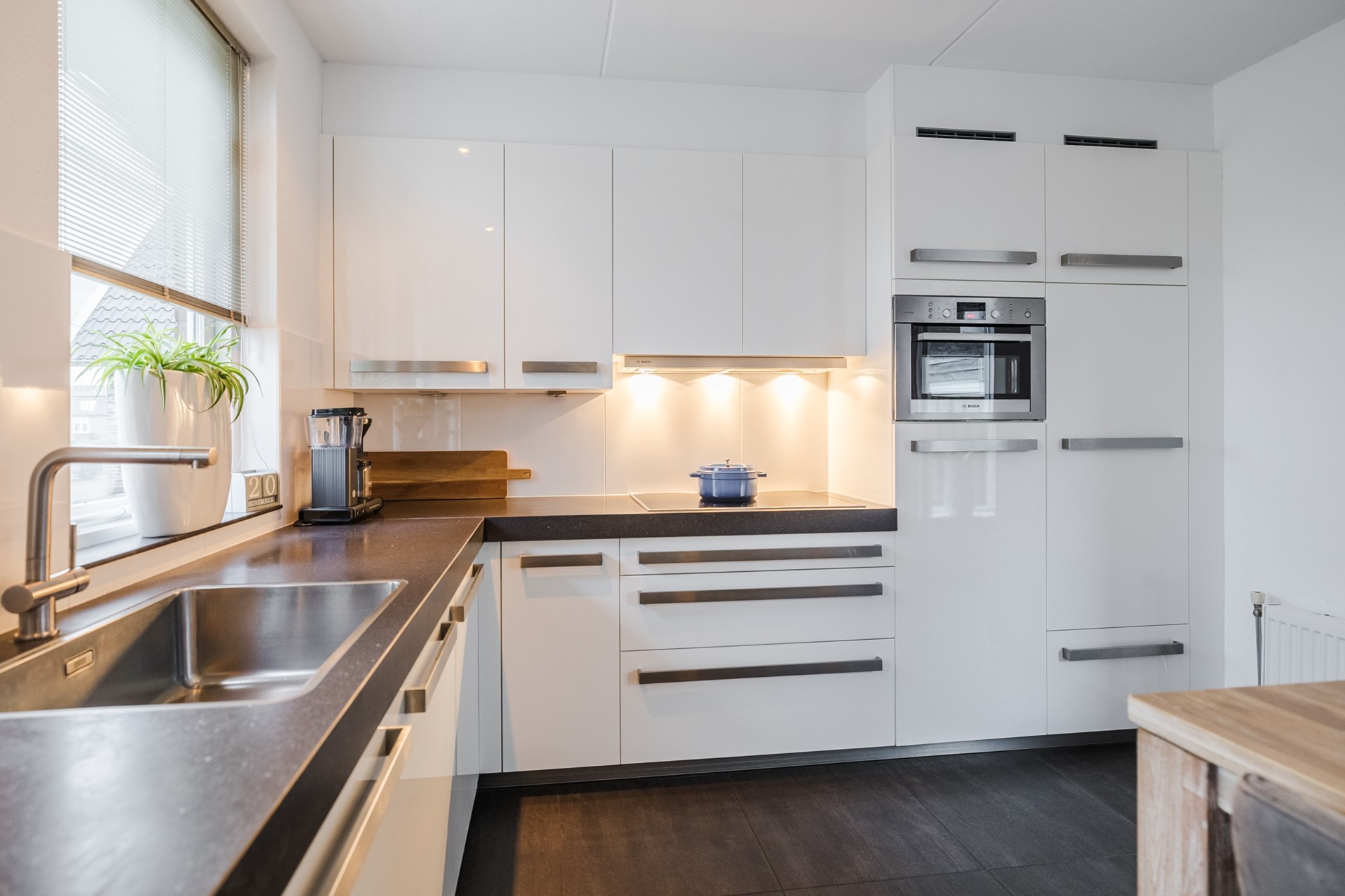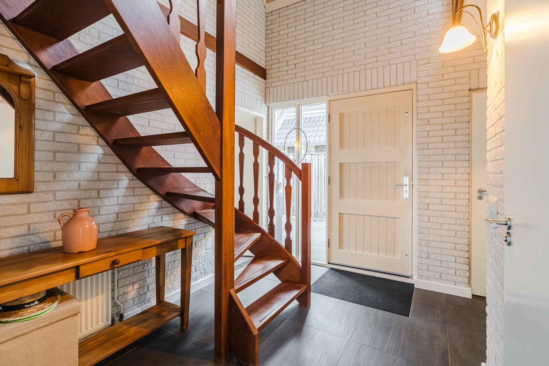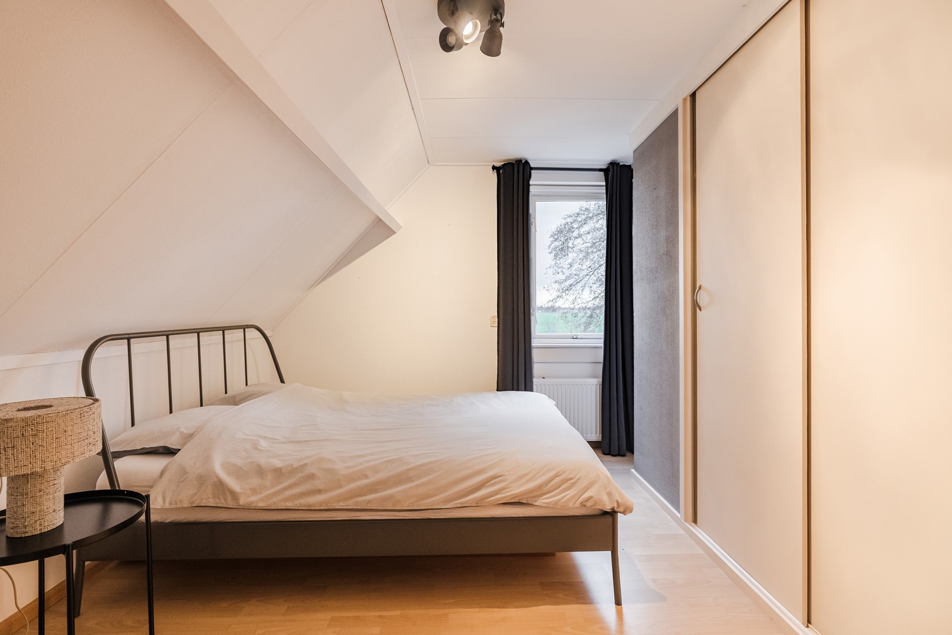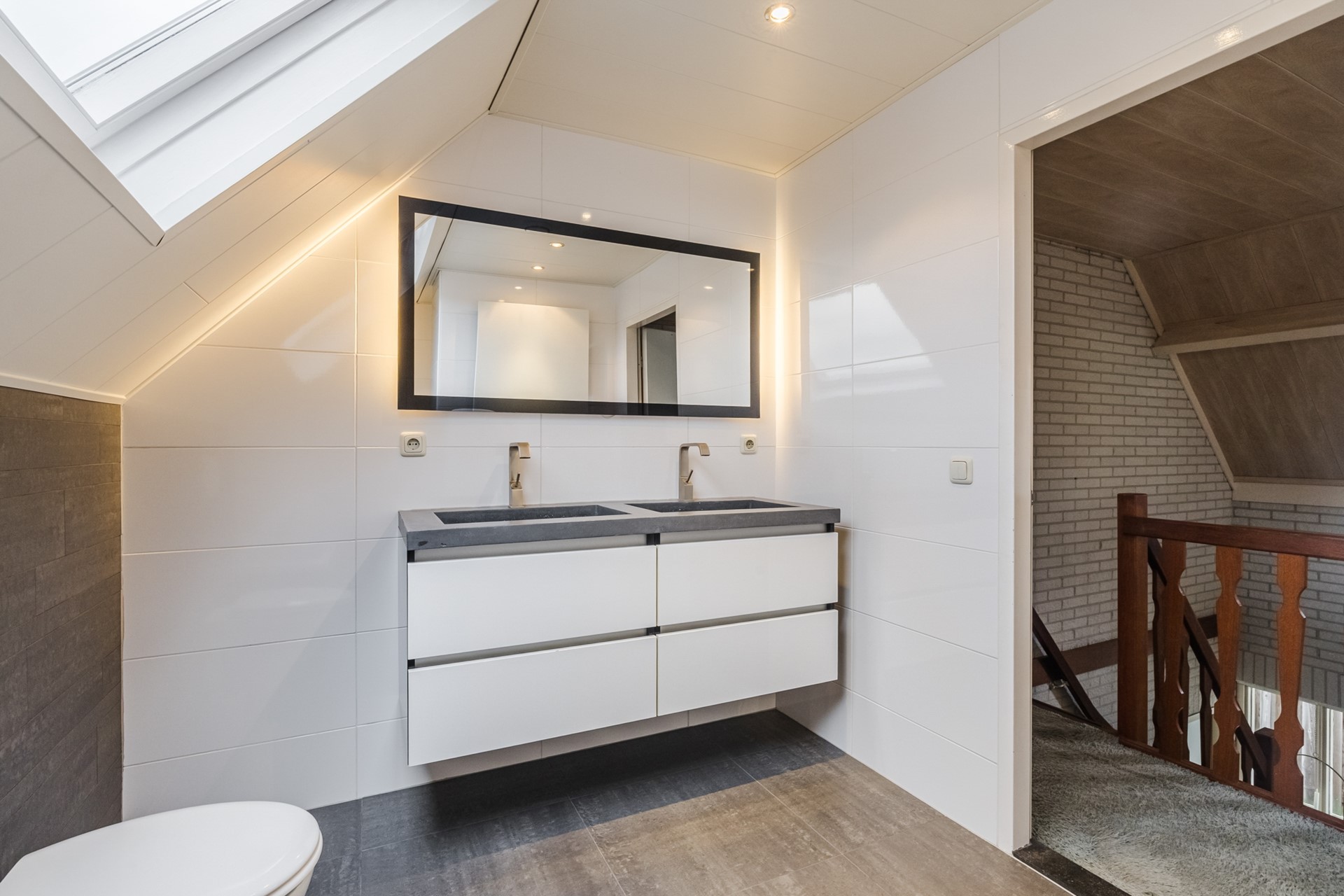 Boven vind je drie ruime slaapkamers en een stijlvolle badkamer met ligbad, inloopdouche en dubbele wastafel. Daarnaast beschikt de woning over een praktische zolderberging voor extra opbergruimte.