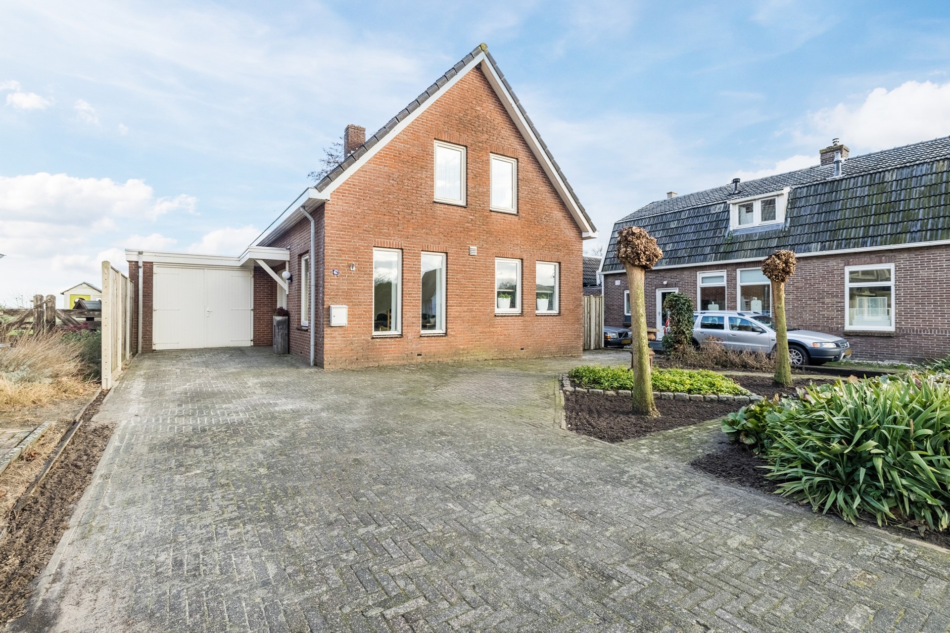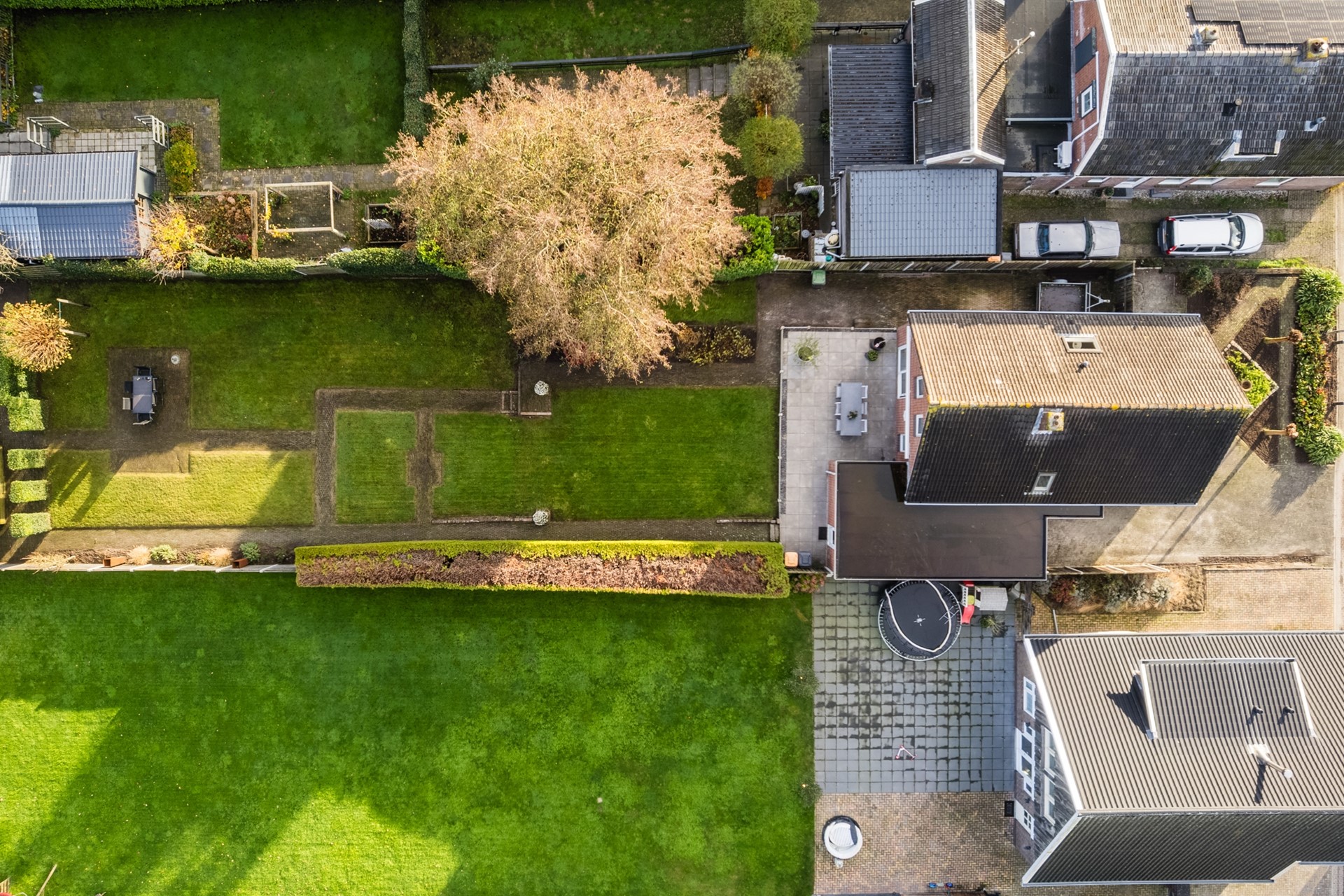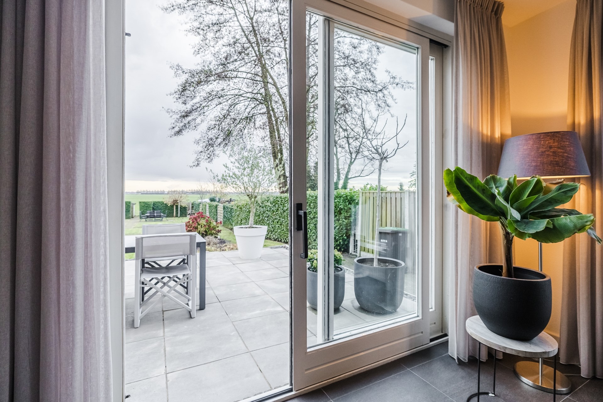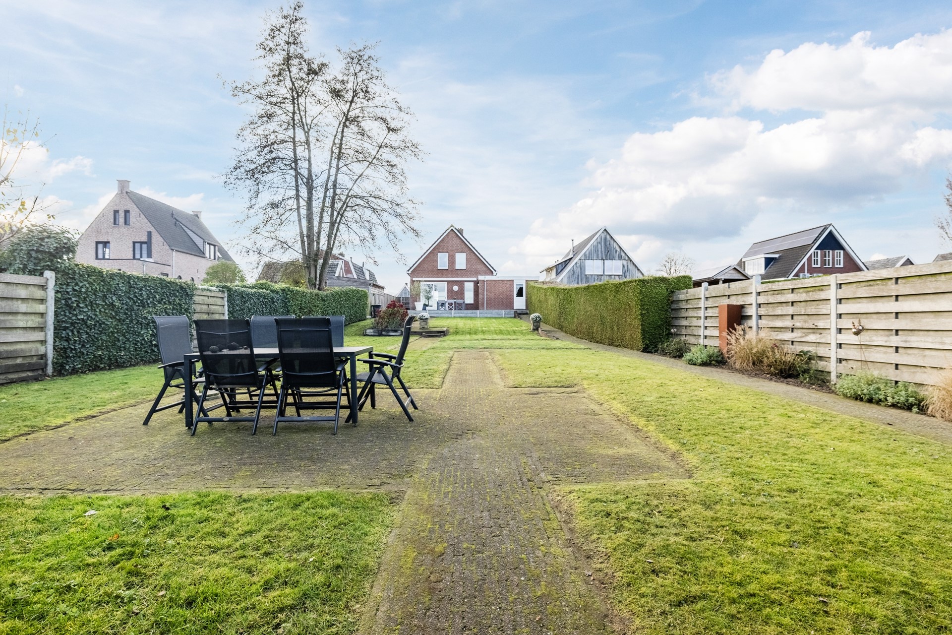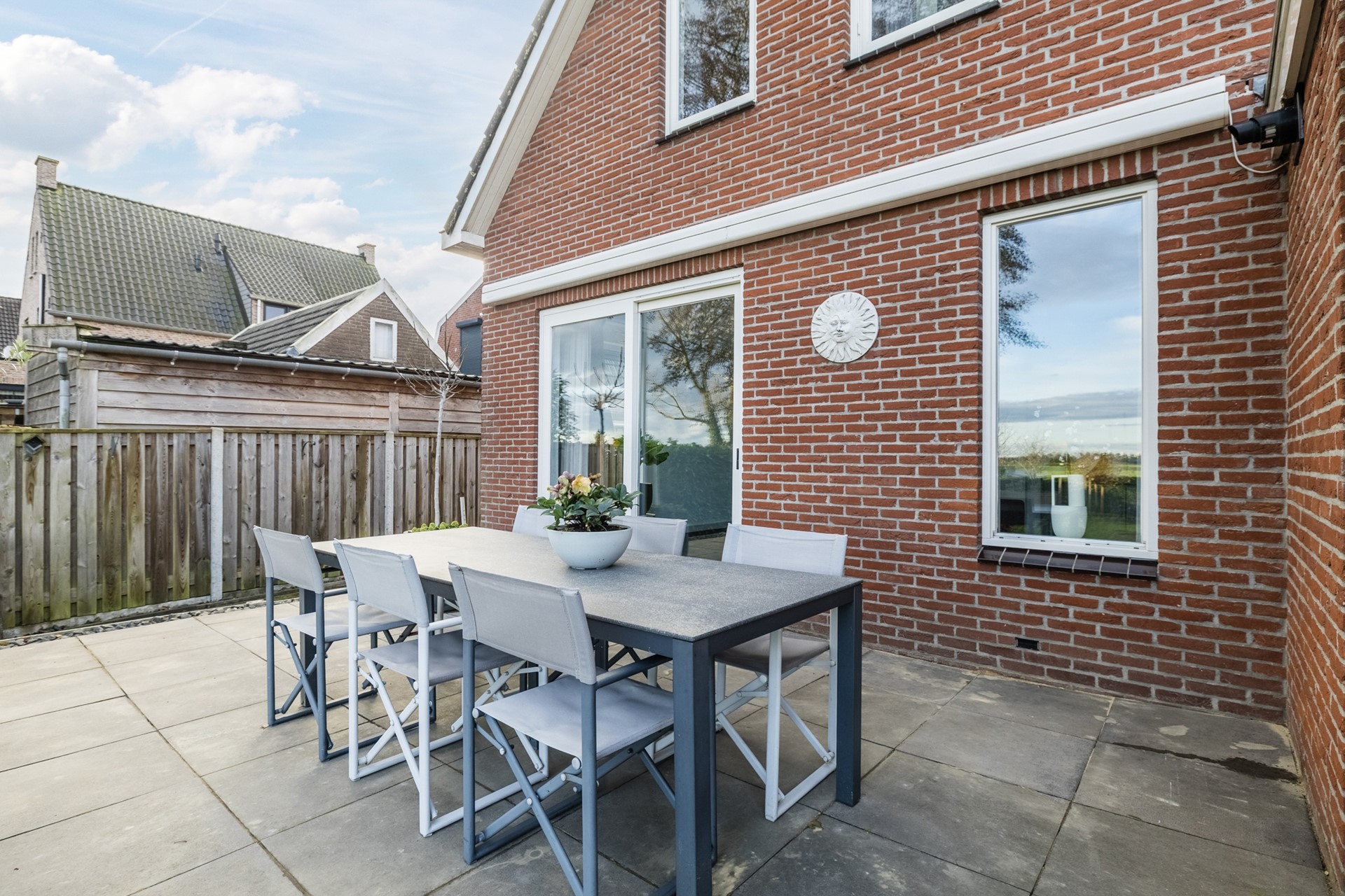 Buiten geniet je van een zonnige tuin met veel privacy, een ruim terras en vrij uitzicht over de landerijen aan de achterzijde. De garage en het tuinhuis bieden volop bergruimte of mogelijkheden voor hobby’s.