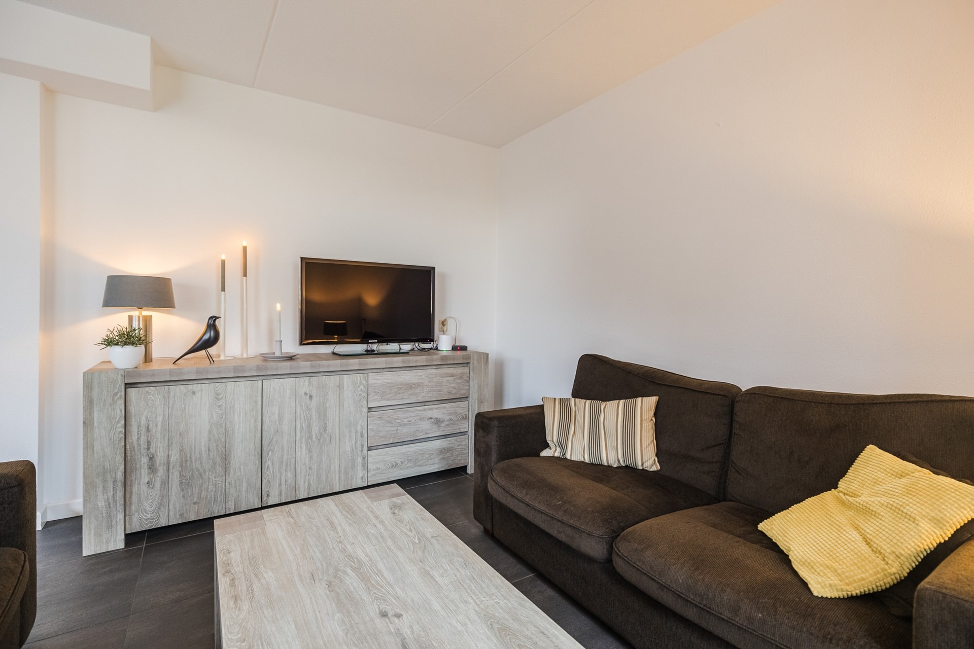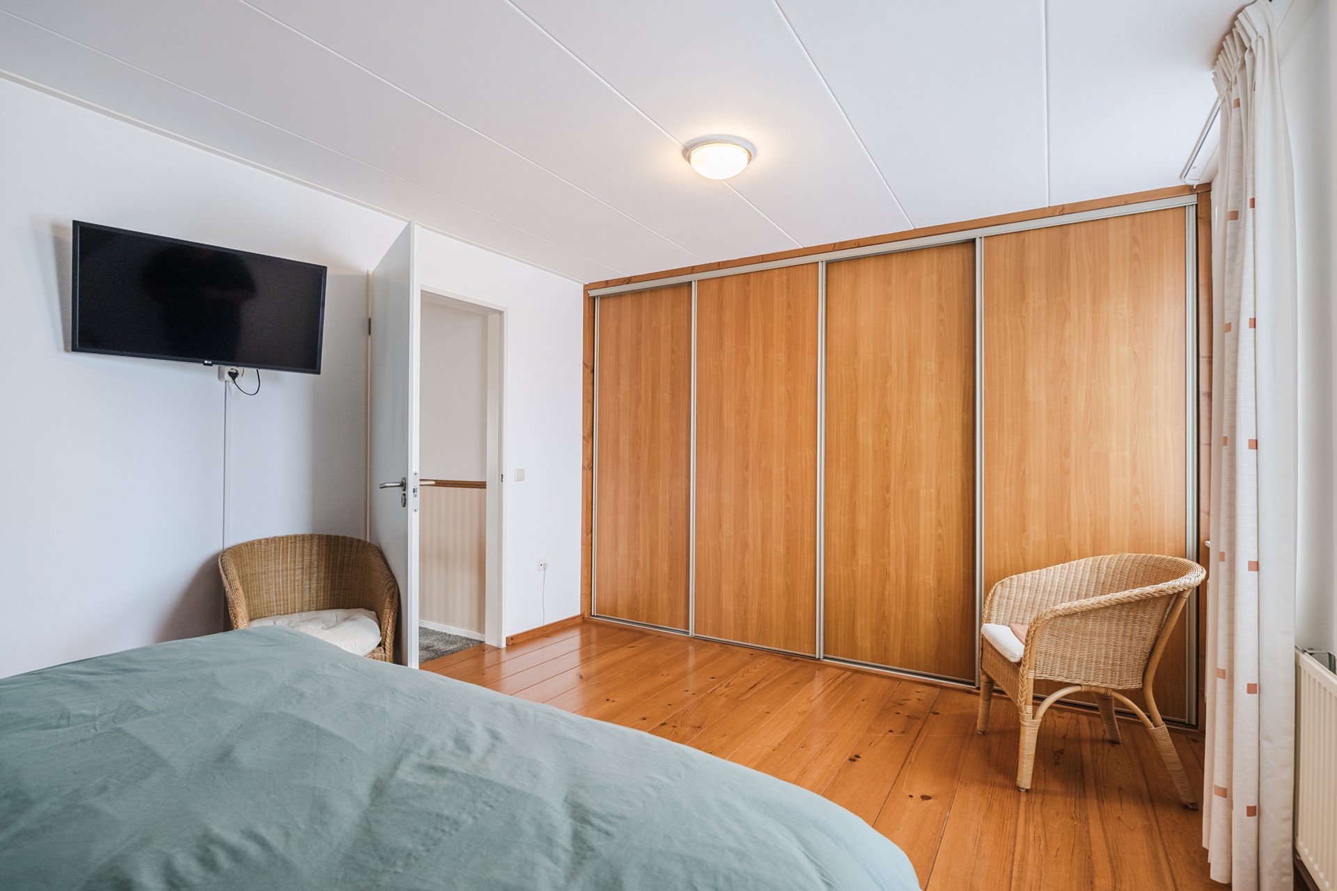 De lichte woonkamer met schuifpui biedt een prachtig uitzicht en is voorzien van een aansluiting voor een houtkachel – ideaal voor gezellige avonden. De moderne halfopen keuken is luxe uitgevoerd en van alle gemakken voorzien. Dankzij de extra kamer op de begane grond is werken of slapen op deze verdieping uitstekend mogelijk.