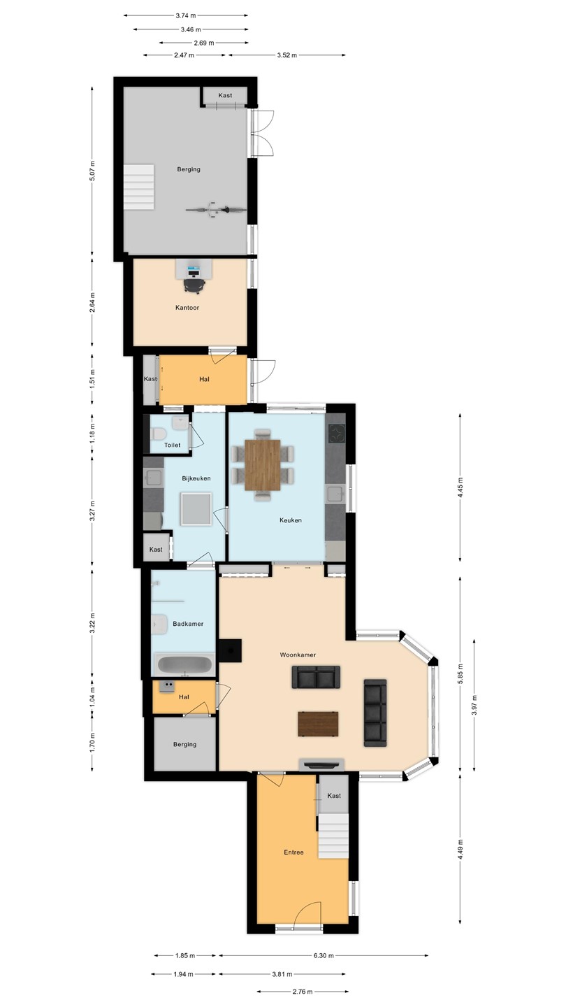 - Kantoorruimte (begane grond) en ruime hobbyruimte aanwezig;