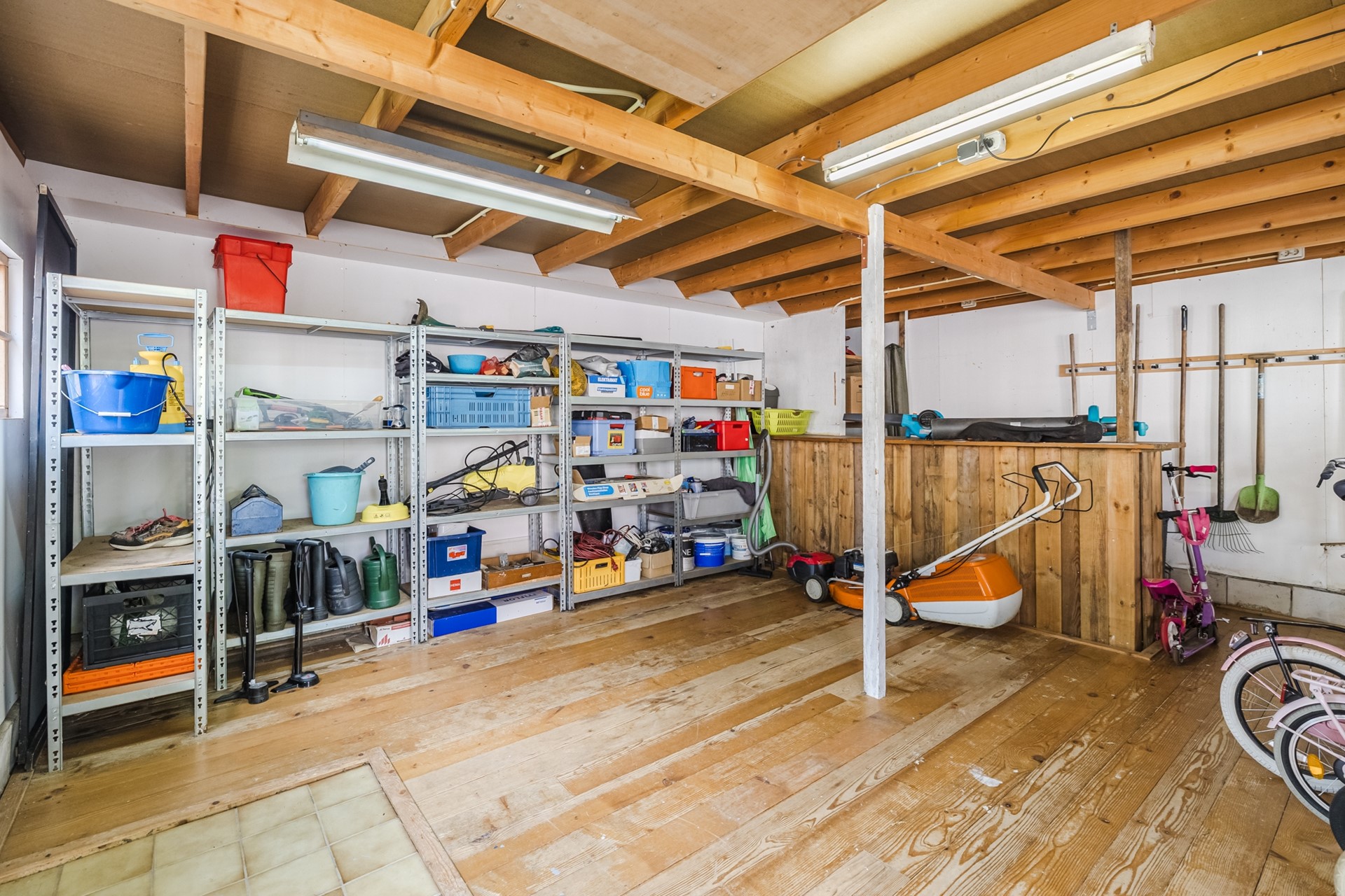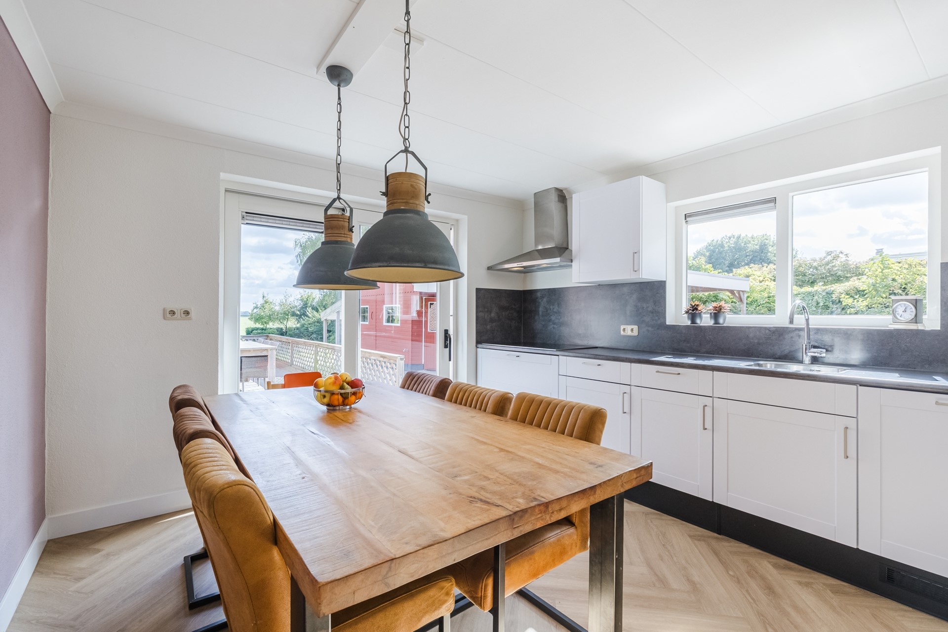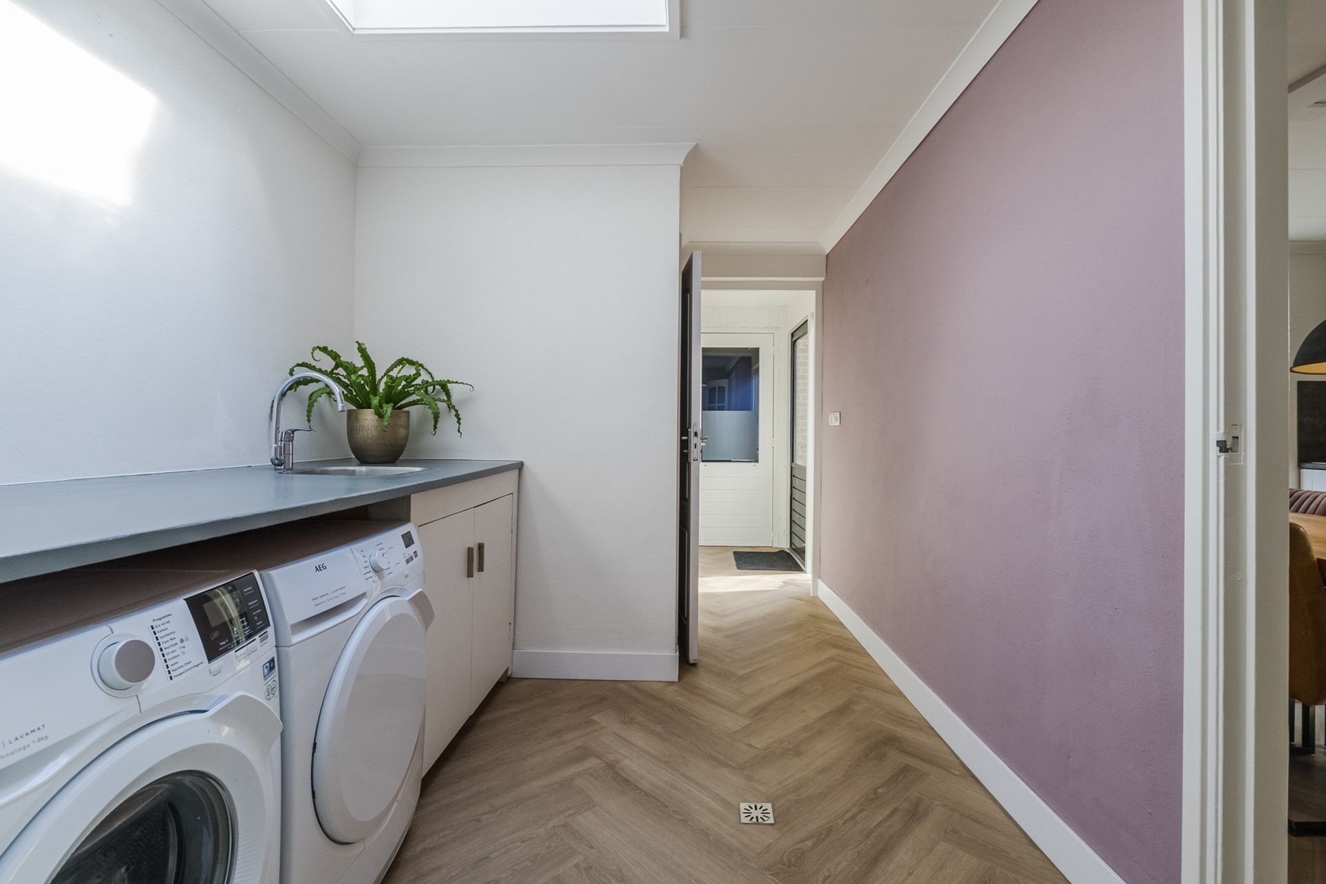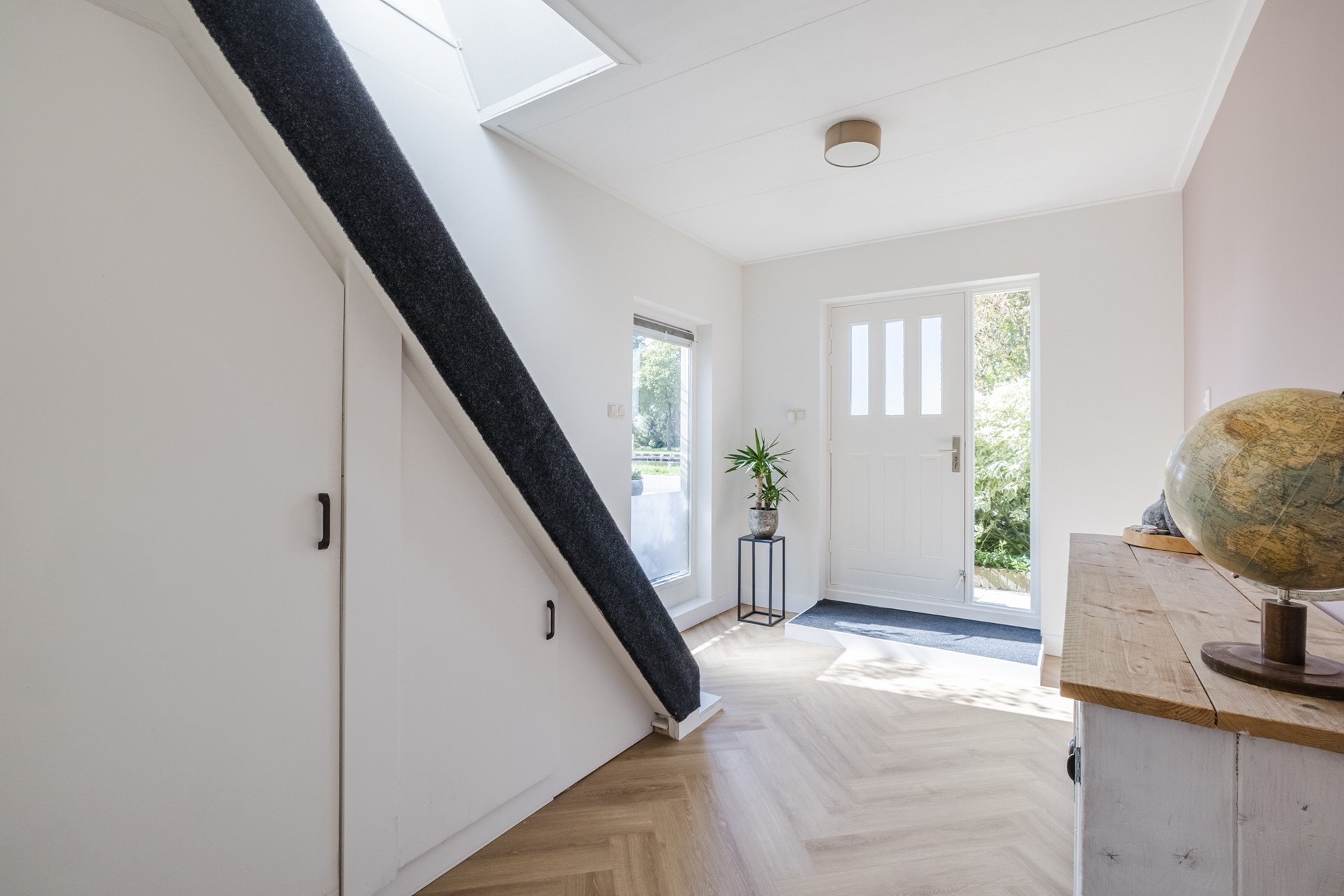 cv-ketel (2025) en toegang tot ruime half verdiepte kelderruimte, dichte woonkeuken met tuindeuren naar terras en moderne, luxe inbouwkeuken voorzien van alle noodzakelijke inbouwapparatuur, bijkeuken met opstelplaats wasmachine/droger, badkamer met douche-inrichting, ligbad en wastafelmeubel, afzonderlijk toilet met fontein, hal met kastruimte en achteringang, kantoorruimte, schuurruimte/hobbyruimte met vaste trap naar royale zolderruimte.
