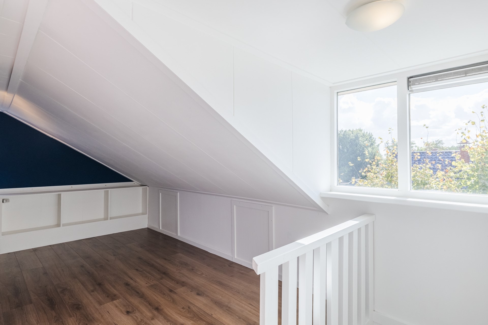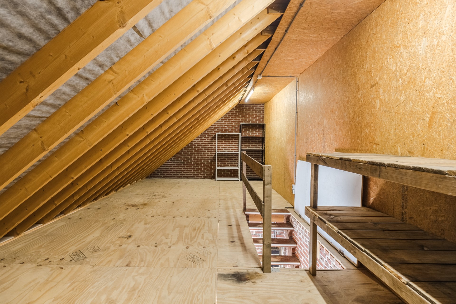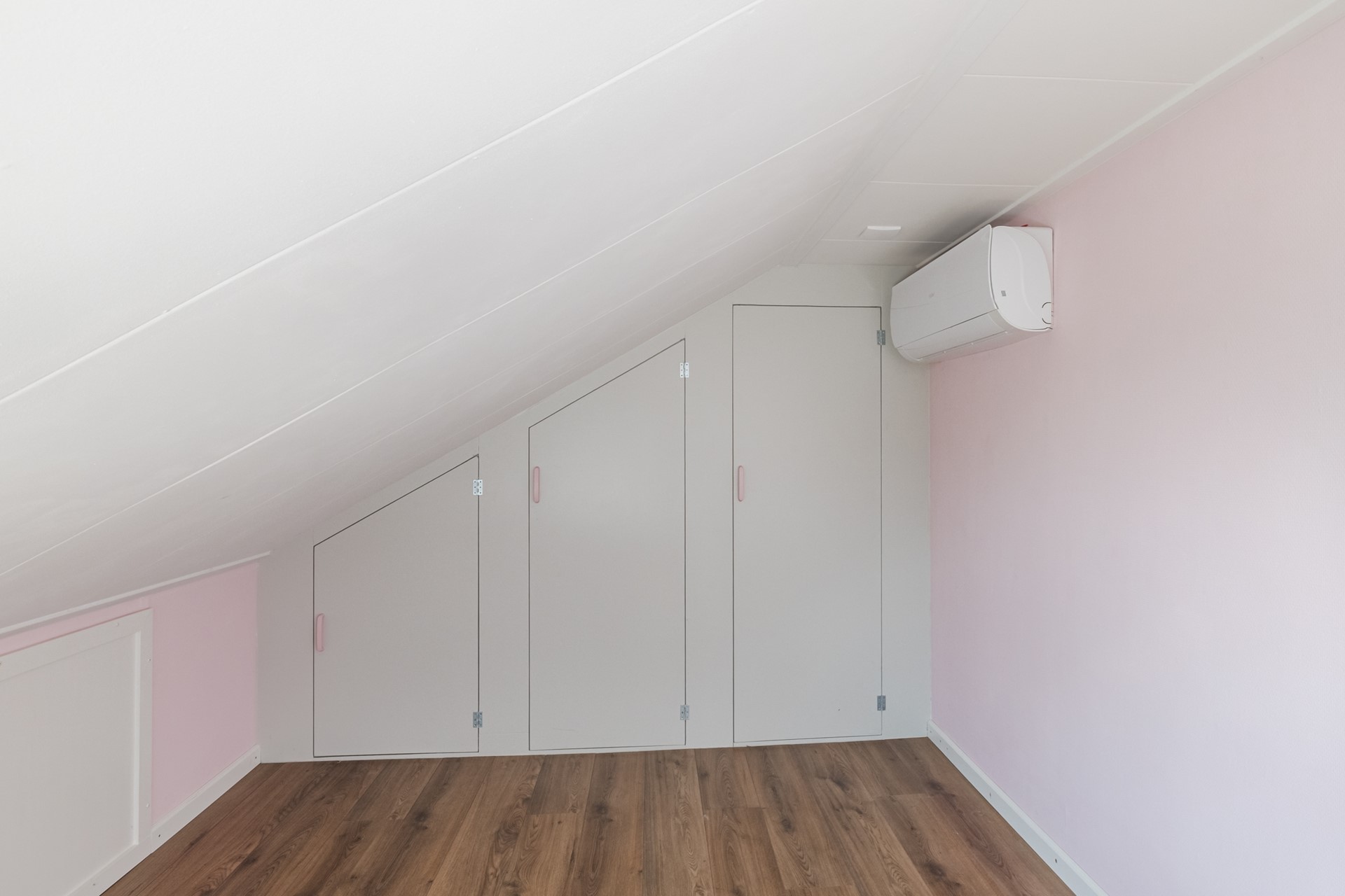 Bereikbaar met vaste trap naar zolderruimte en 3e slaapkamer met kastruimte, bergruimte achter de knieschotten en airco-installatie (2020) (2e verdieping voorzien van een groot dakkapel).