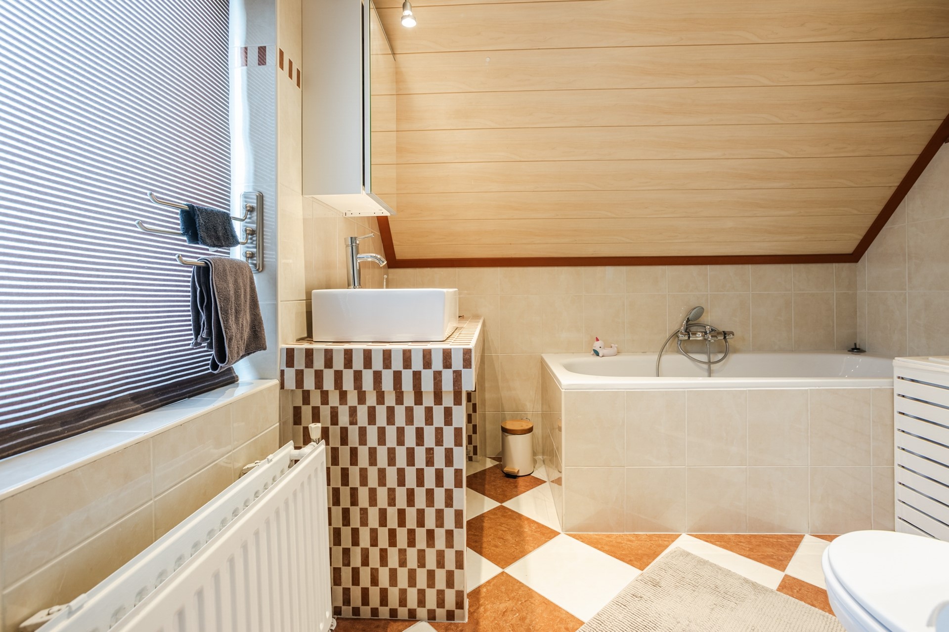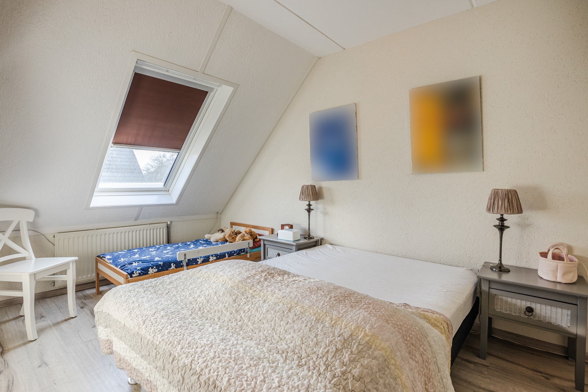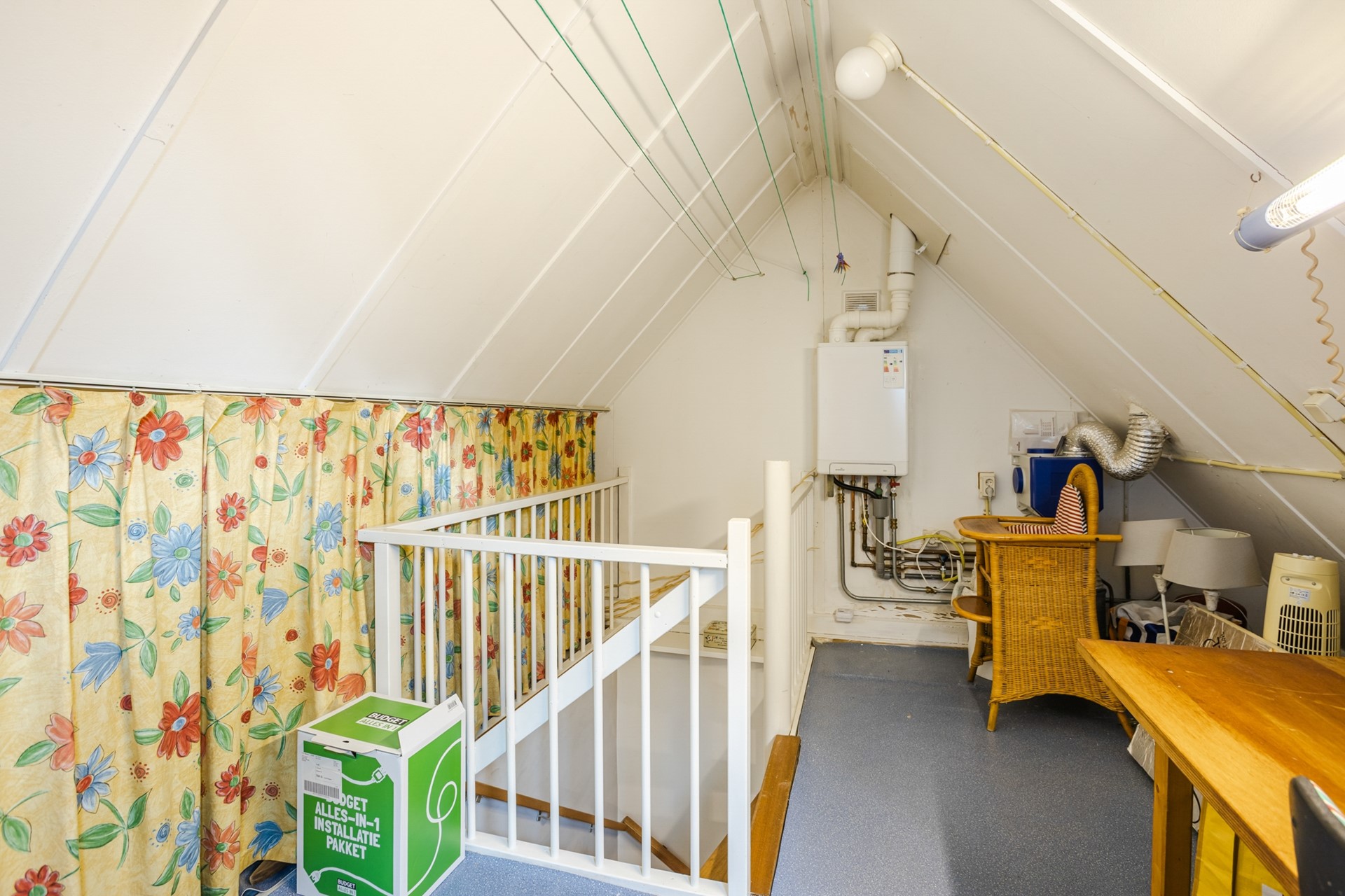 Bereikbaar met vaste trap naar zolderruimte met vaste kast en opstelplaats voor de cv-ketel.