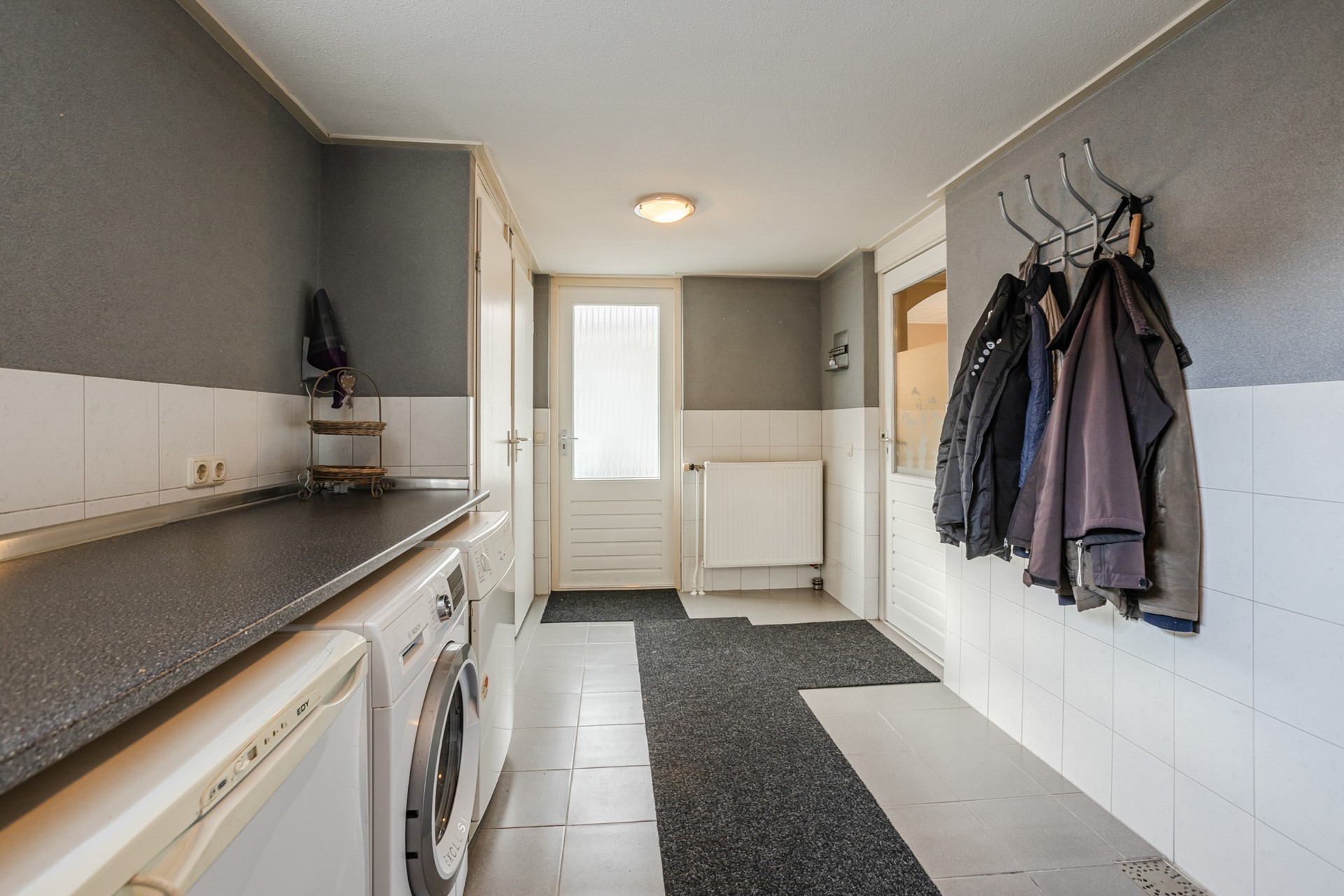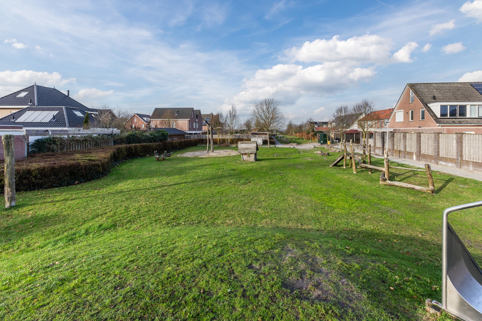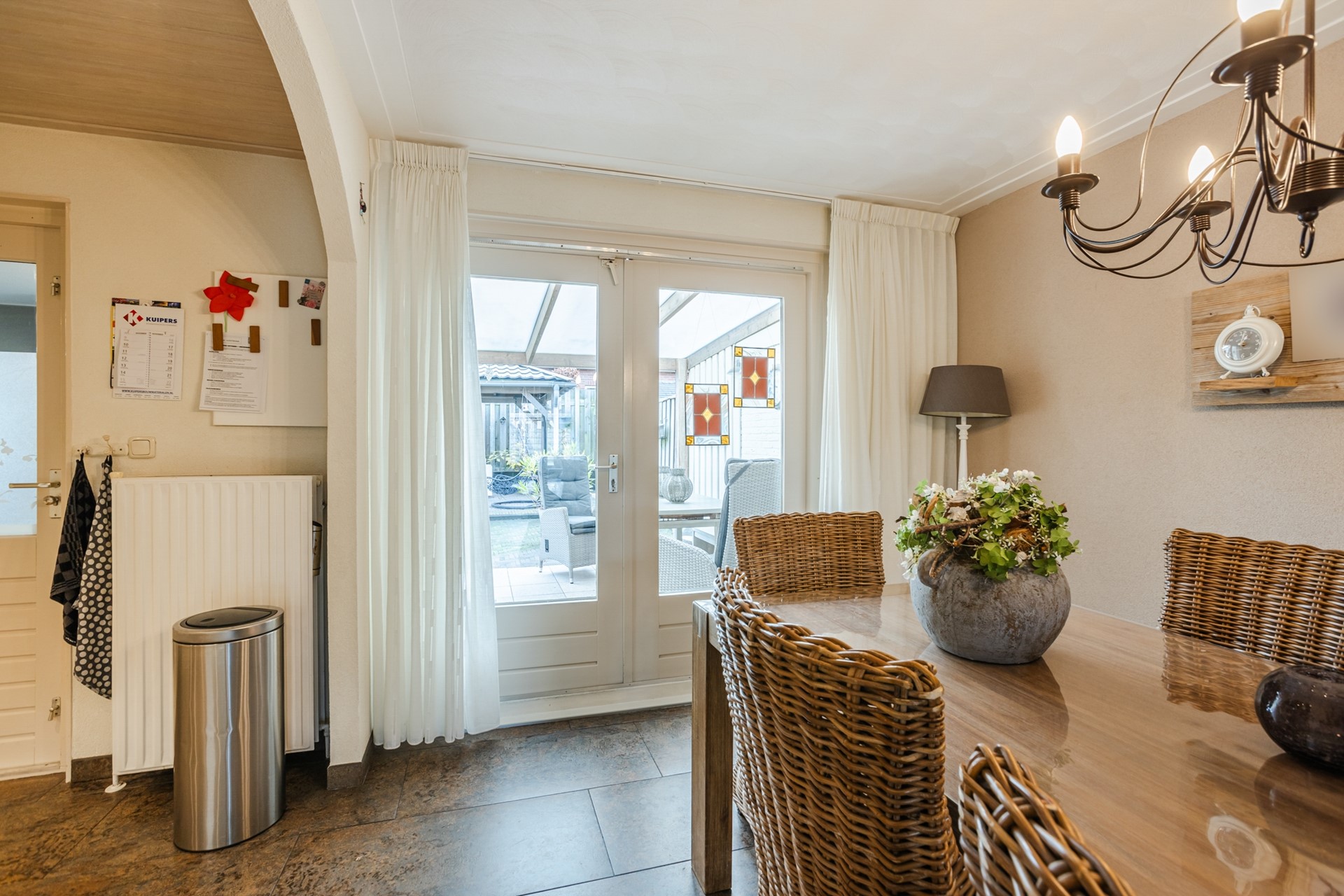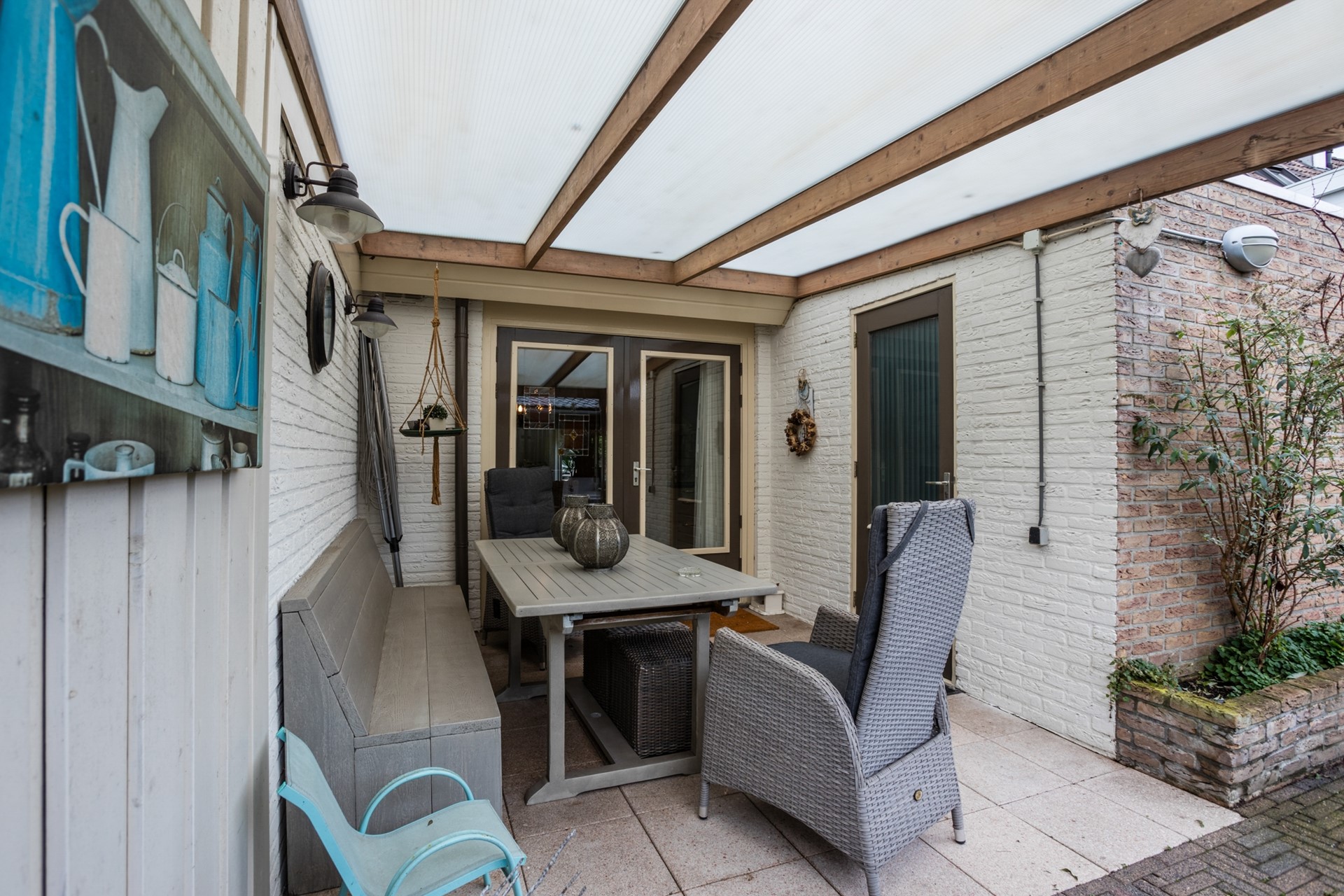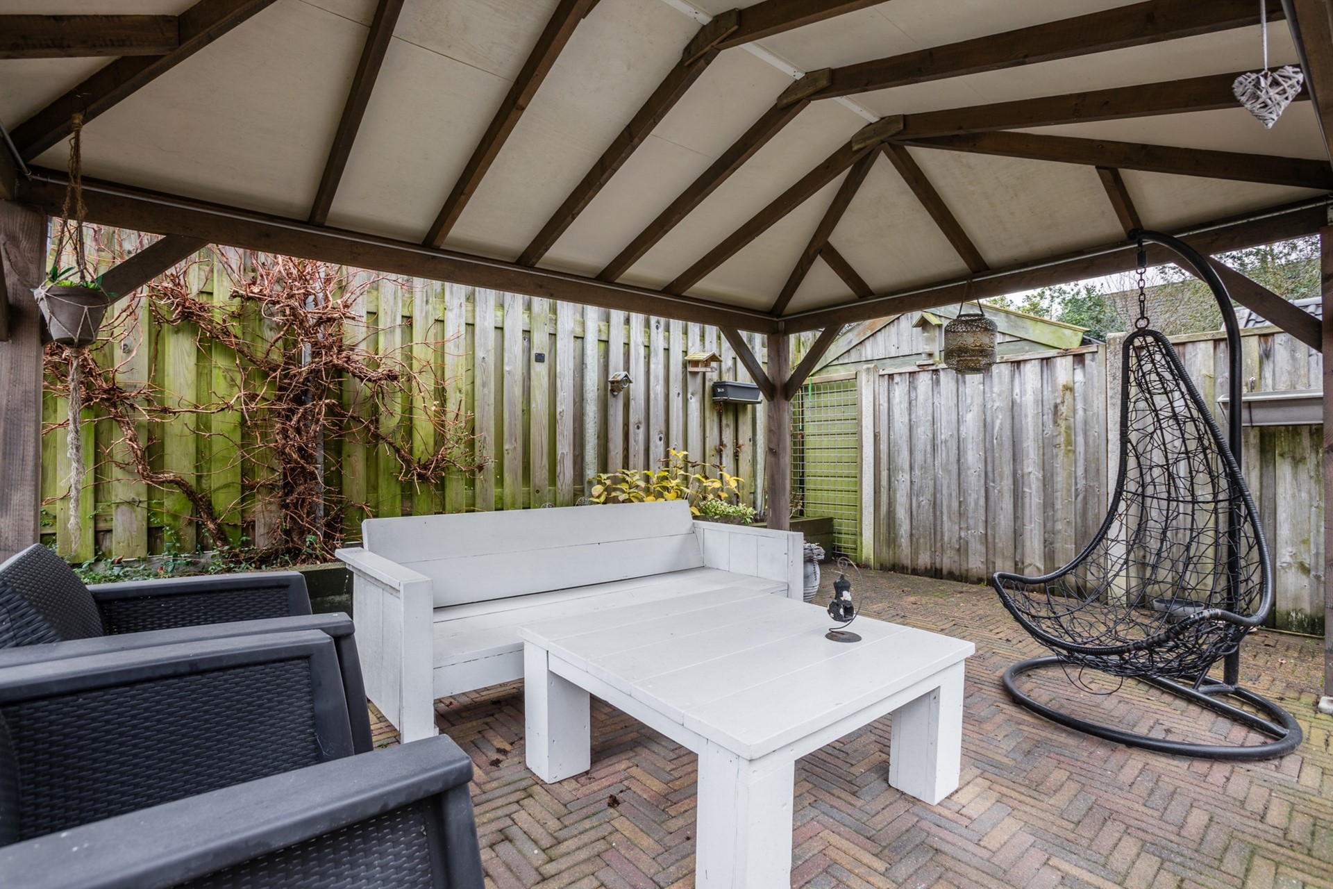 De achtertuin ligt op het zuidoosten, is onderhoudsvriendelijk aangelegd en voorzien van een aangebouwde- én een vrijstaande terrasoverkapping, waardoor je het hele jaar door comfortabel buiten kunt zitten.