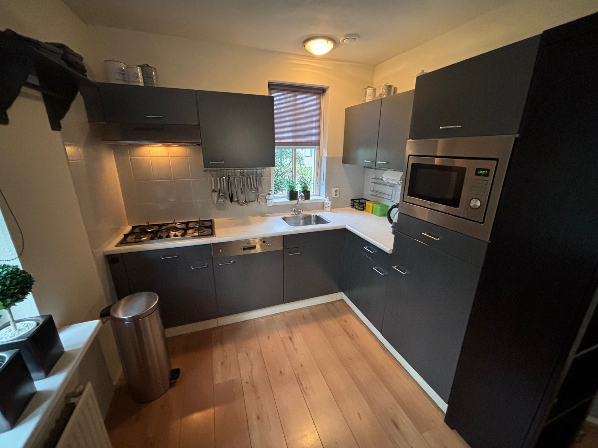 Entree met trapopgang naar verdieping, meterkast via buitenzijde bereikbaar, staand toilet met fontein, badkamer met wastafelmeubel, ligbad en douche-inrichting met cabine, ruime woonkamer met tuindeuren naar terras en open keuken voorzien van een L-vormige inbouwkeuken voorzien van diverse inbouwapparatuur, inpandige berging via buitenom bereikbaar met opstelplaats van de cv-ketel, wasmachine/droger opstelplaats en extra provisieruimte, aangebouwde carport en aangebouwde berging/fietsenschuur.