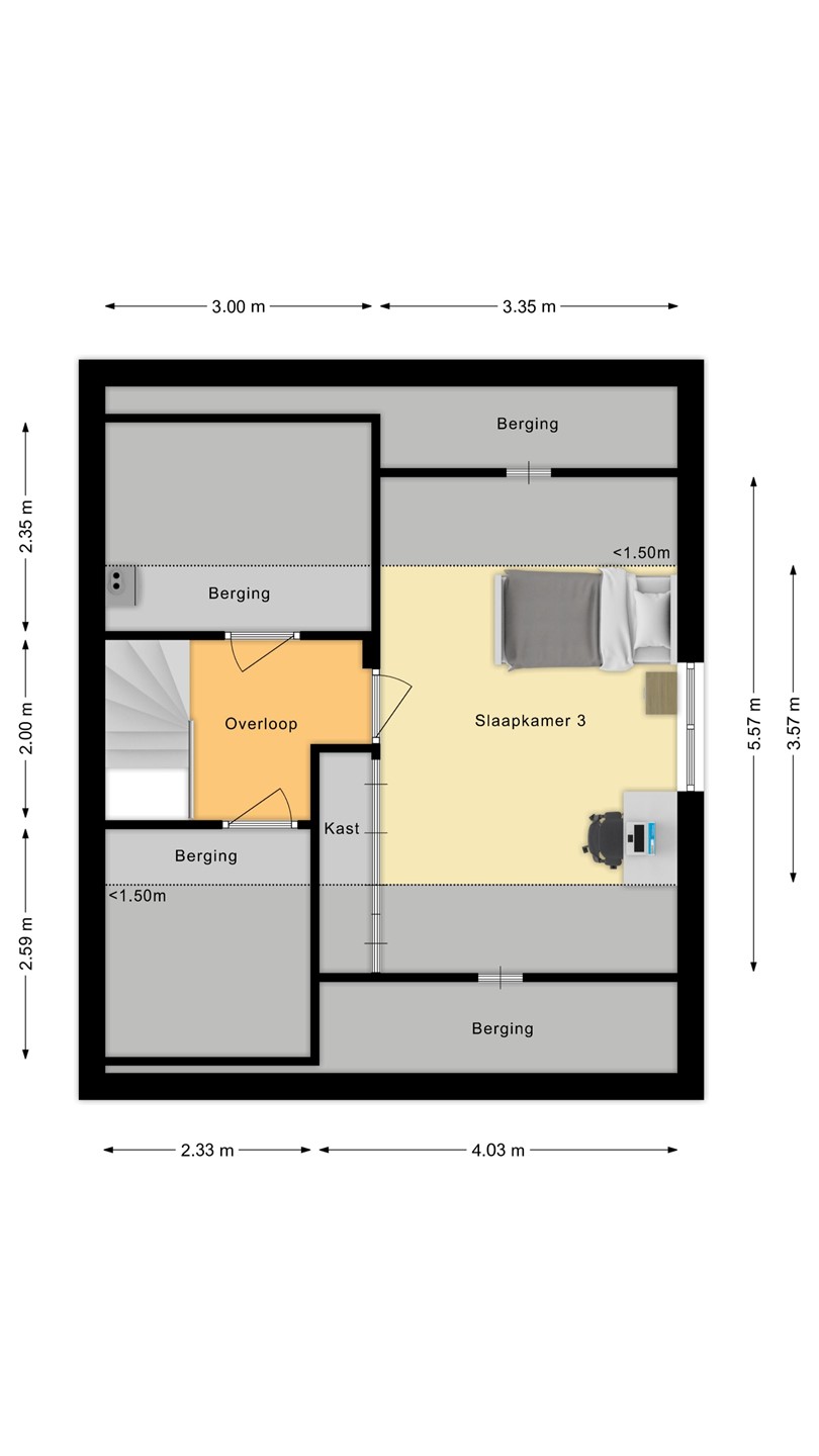 Bereikbaar met vaste trap naar overloop met bergruimte en afzonderlijke ruimte voor de cv-ketel (2019) en een afzonderlijke 4e slaapkamer met vaste kast.