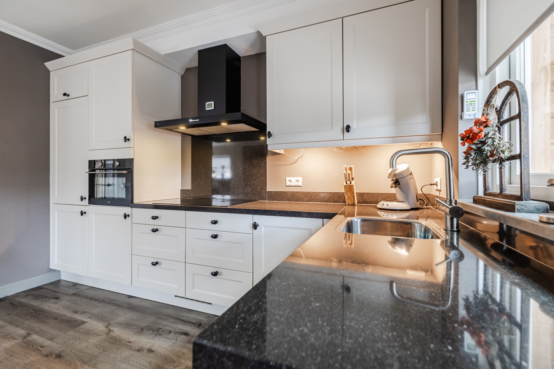 Entree, modern wandcloset, vernieuwde meterkast, trapopgang, open keuken met trapkast en L-vormige inbouwkeuken (2019) voorzien van diverse inbouwapparatuur, rechthoekige doorzon woonkamer met zicht op gemeentelijk plantsoen, vanuit keuken heeft u toegang tot de overkapping welke kan worden afgesloten met glazen schuifwanden en toegang biedt tot bijkeuken en hobbyruimte en toegang tot de garage.