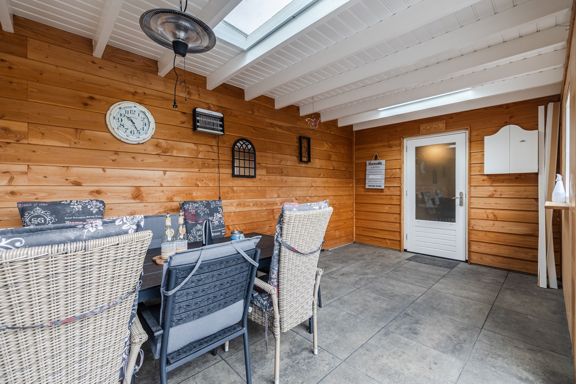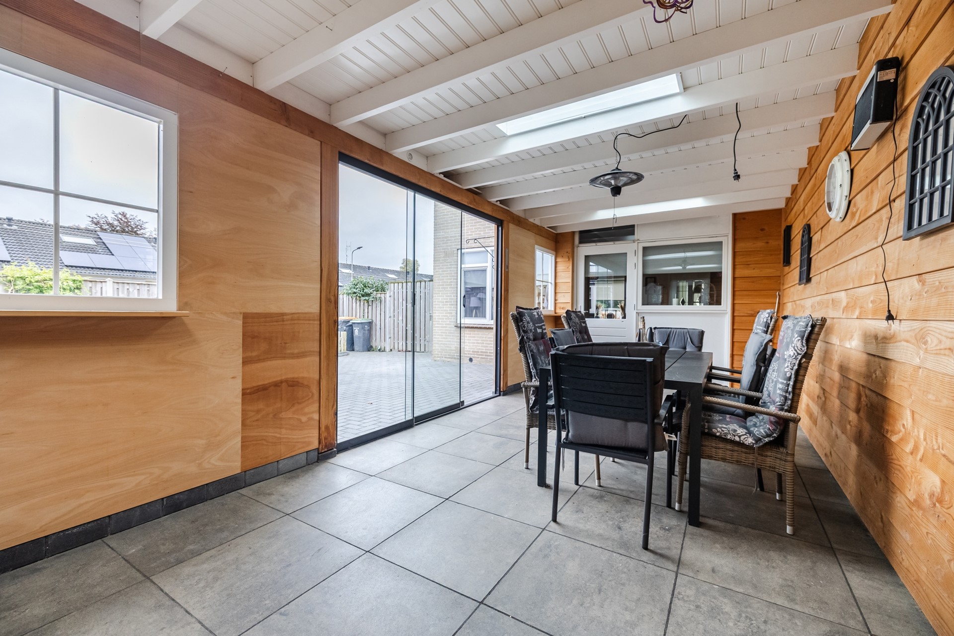 Boven bevinden zich drie ruime slaapkamers en een moderne badkamer, terwijl de zolder een vierde slaapkamer of werkruimte biedt. De sfeervolle overkapping met glazen schuifwanden vormt het perfecte verlengstuk van de leefruimte, zodat u het hele jaar door kunt genieten van binnen én buiten.