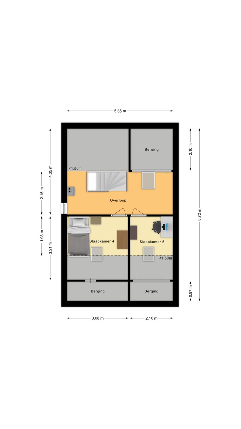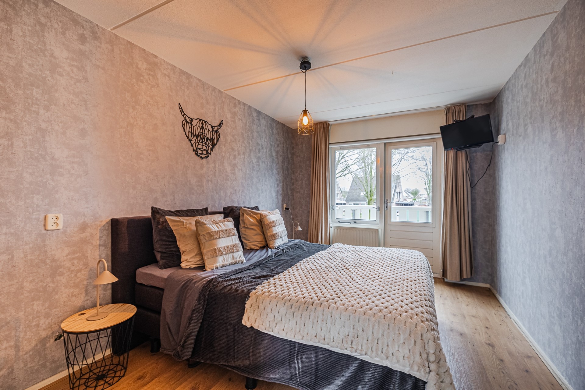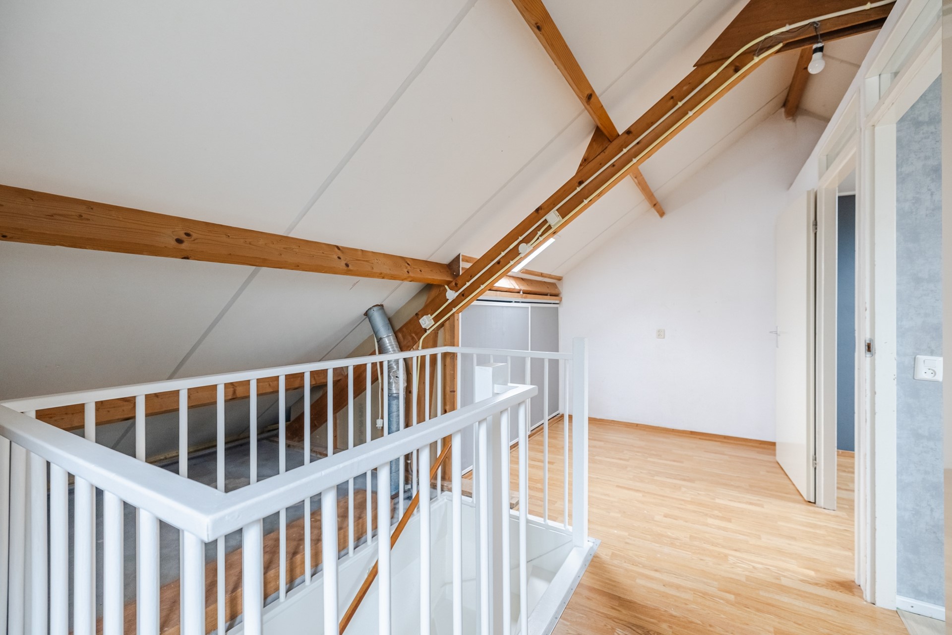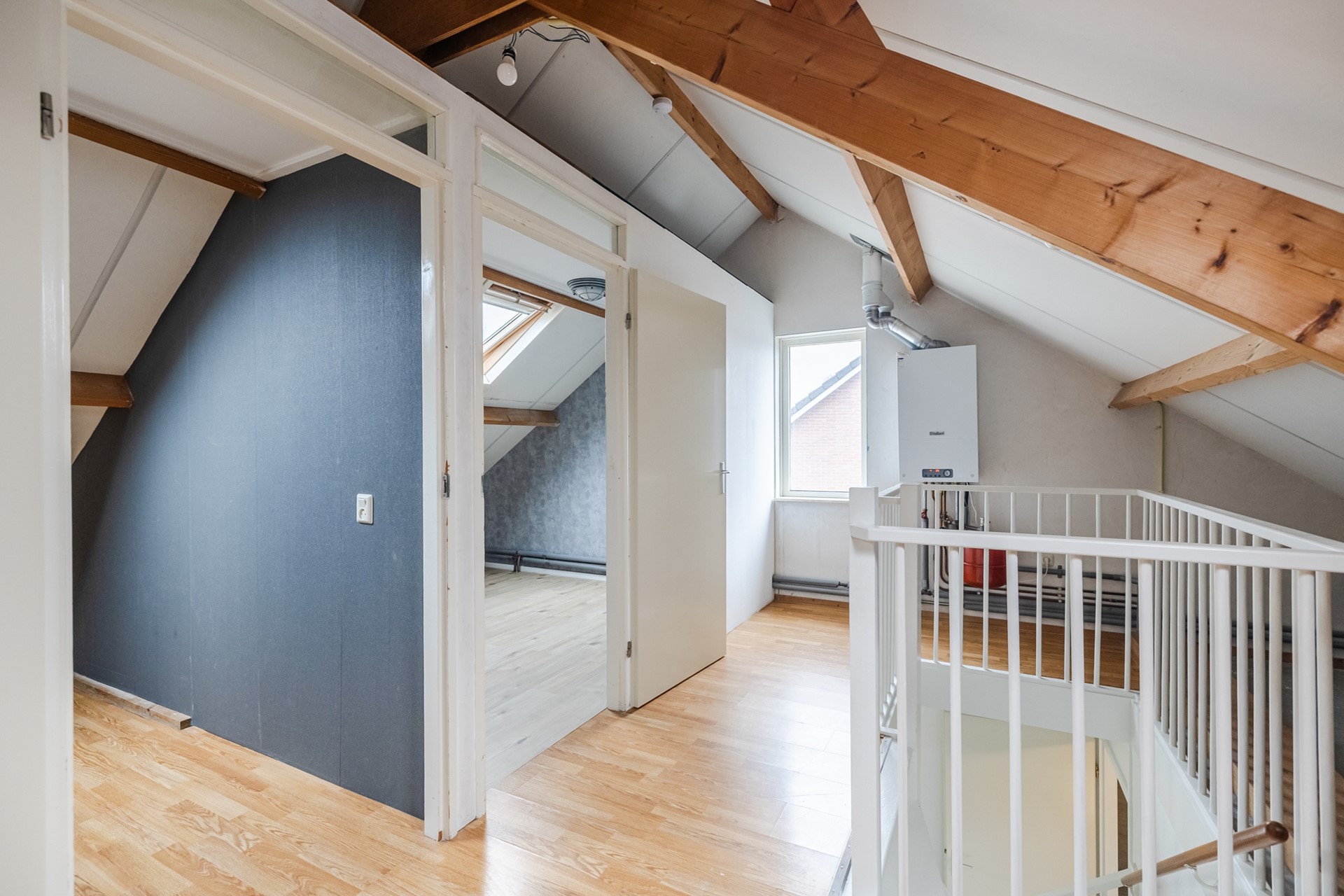 Op de verdiepingen bevinden zich in totaal 5 ruime slaapkamers, waaronder een kamer met balkon aan de voorzijde. De moderne badkamer (2021) is compleet uitgevoerd met ligbad, inloopdouche en een tweede toilet. Via een vaste trap is de tweede verdieping bereikbaar, waar extra kamers en bergruimte zijn gerealiseerd. De woning beschikt daarnaast over diverse vaste bergruimtes, een aangebouwde garage met kanteldeur en een luifel bij de voordeur.