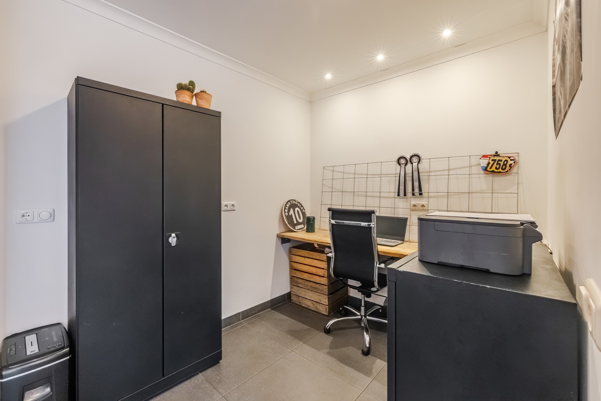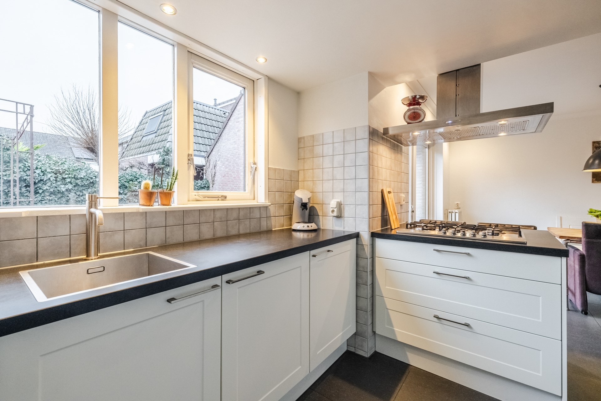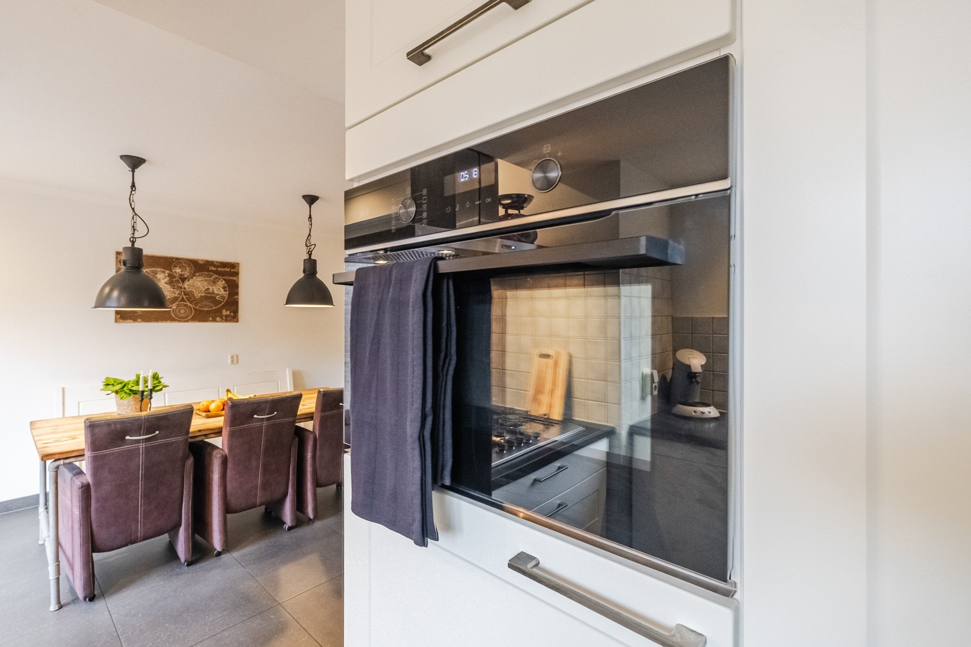 De begane grond biedt een prettige leefomgeving met een royale L-vormige woonkamer voorzien van een parketvloer en een gezellige gashaard. Via openslaande deuren bereik je de uitgebouwde woonkeuken: een heerlijke plek om samen te komen, met een ruim eetgedeelte, tuindeuren naar het zongerichte terras en een open keuken met diverse inbouwapparatuur. Daarnaast is er een praktische werkhoek die ook uitstekend kan dienen als thuiswerkplek. Vanuit de keuken is er directe toegang tot de aangebouwde garage.