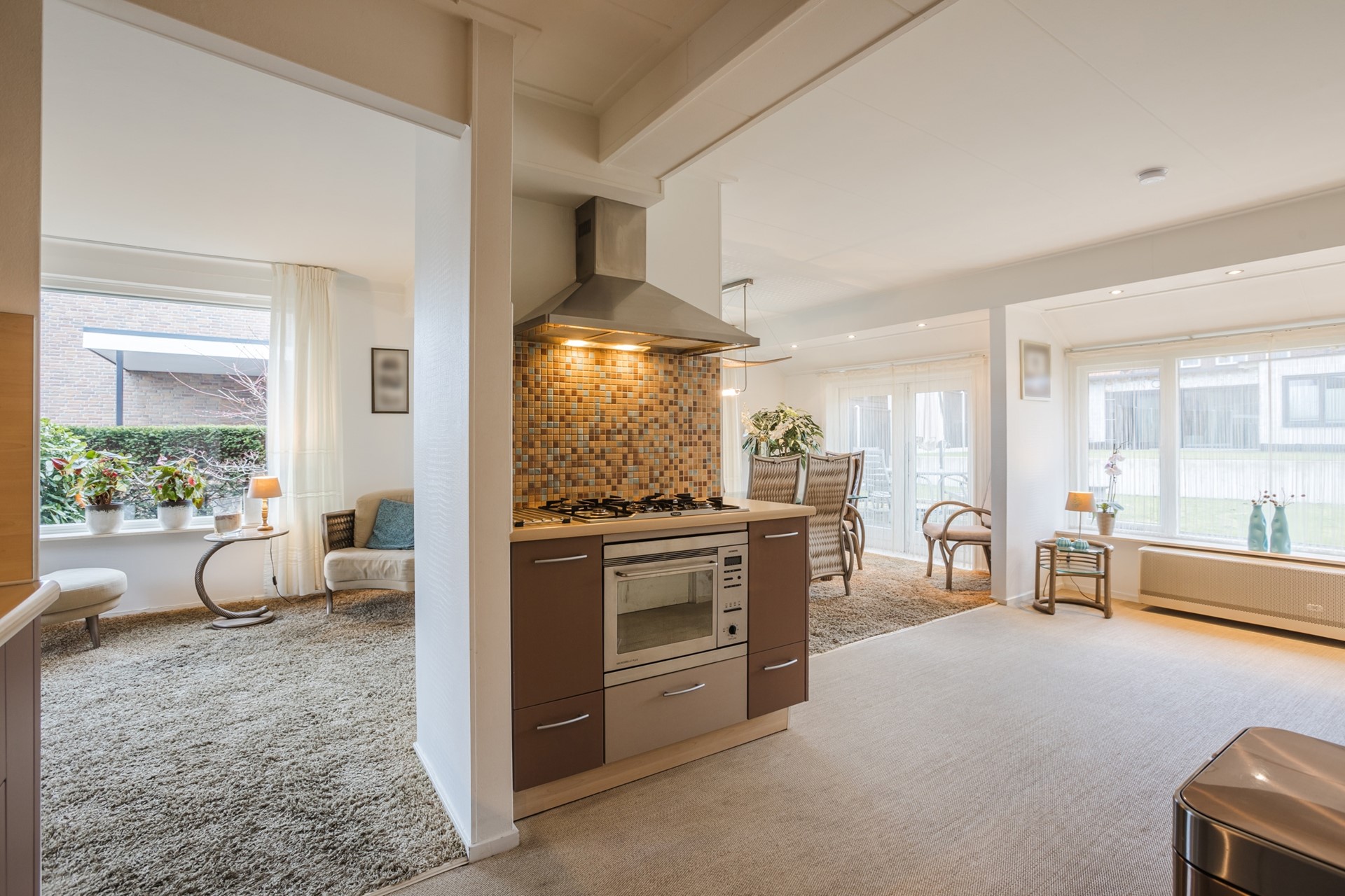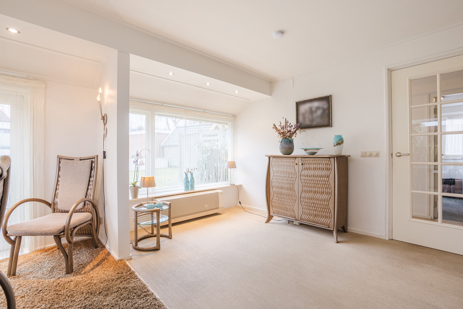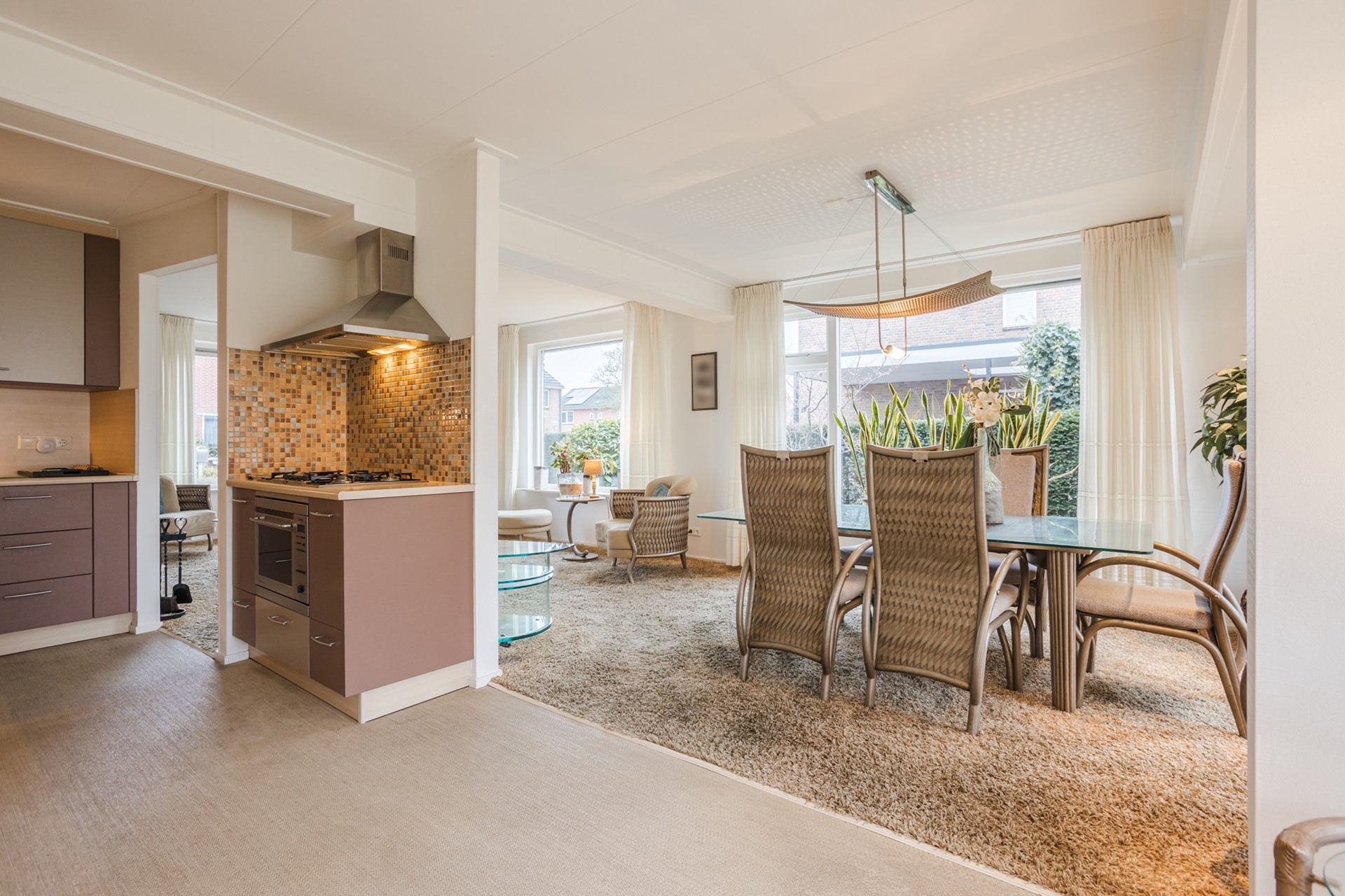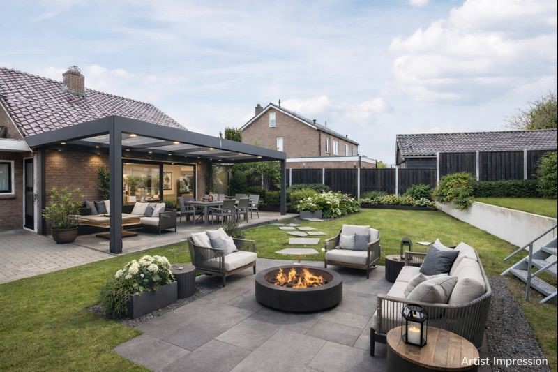 - Royale lichte L-vormige woonkamer met tuindeuren naar de achtertuin;