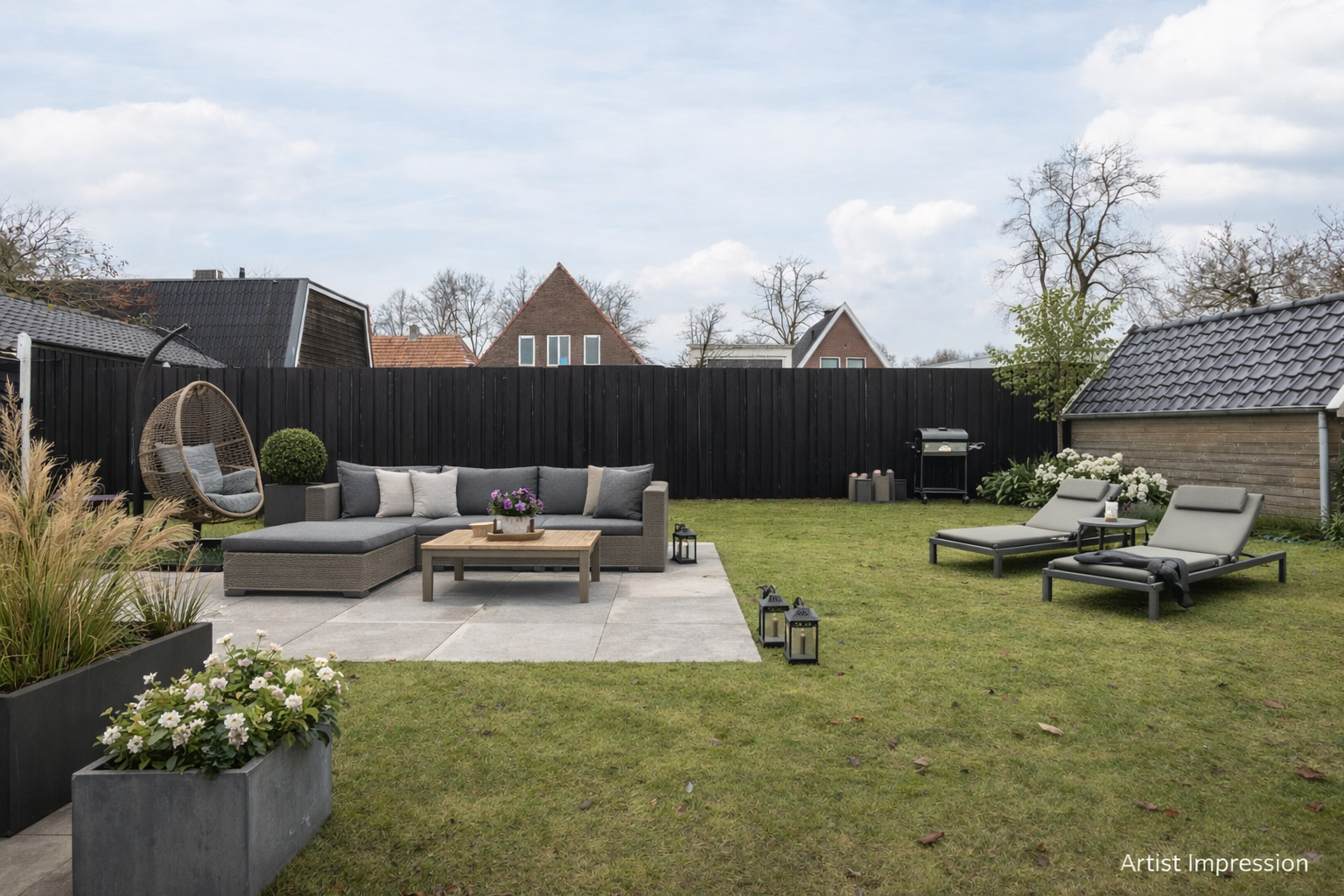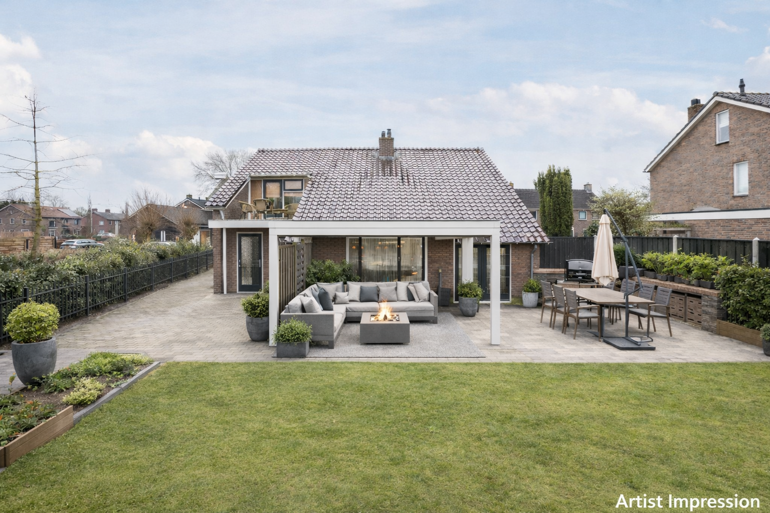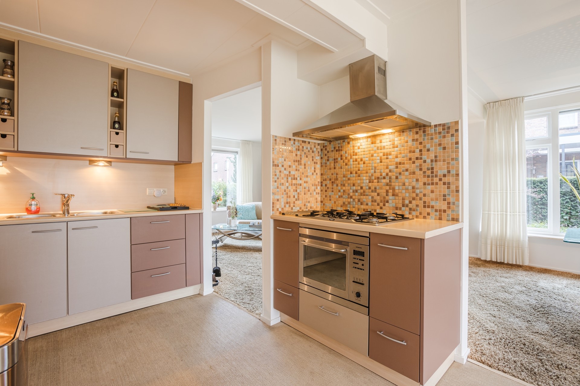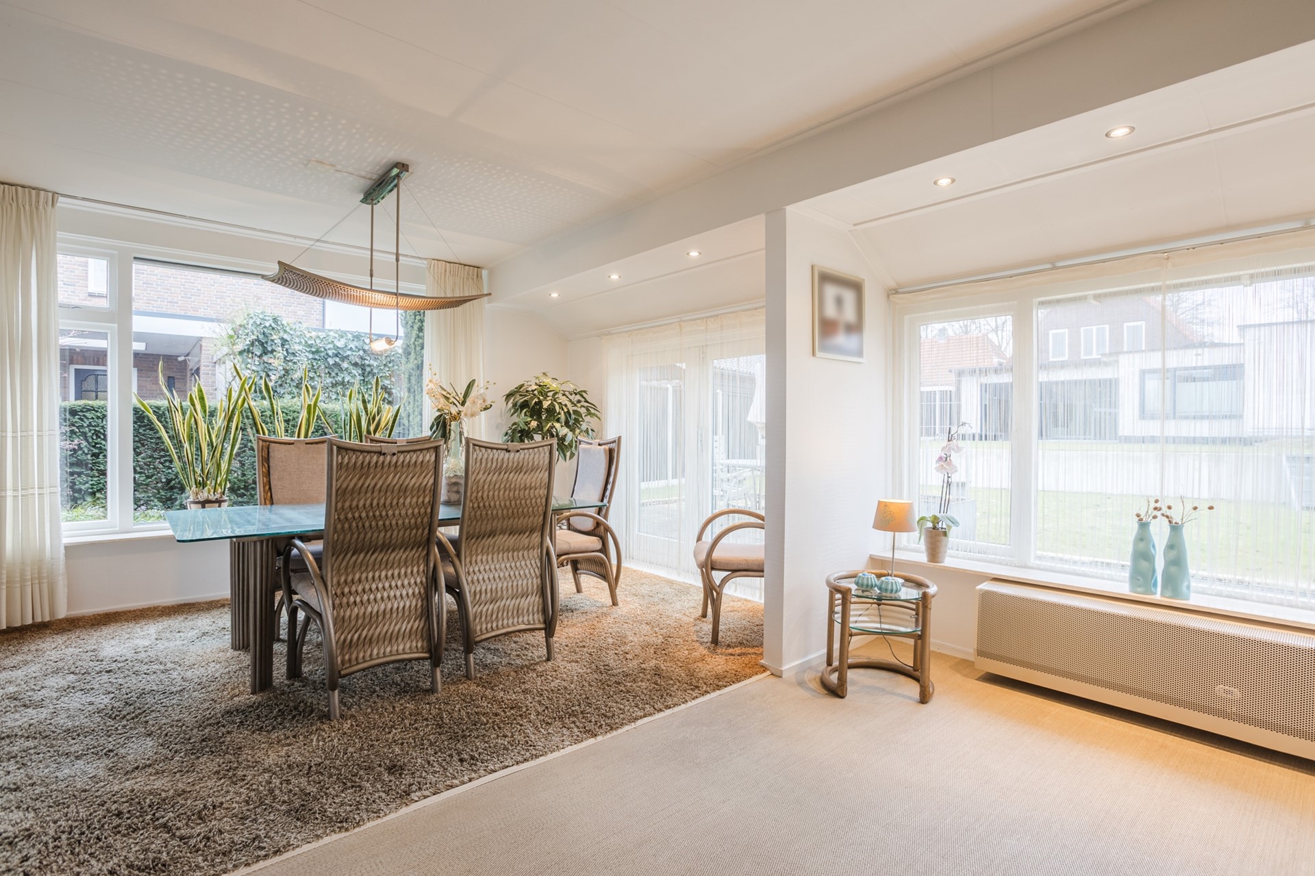 - Royale lichte L-vormige woonkamer met tuindeuren naar de achtertuin;