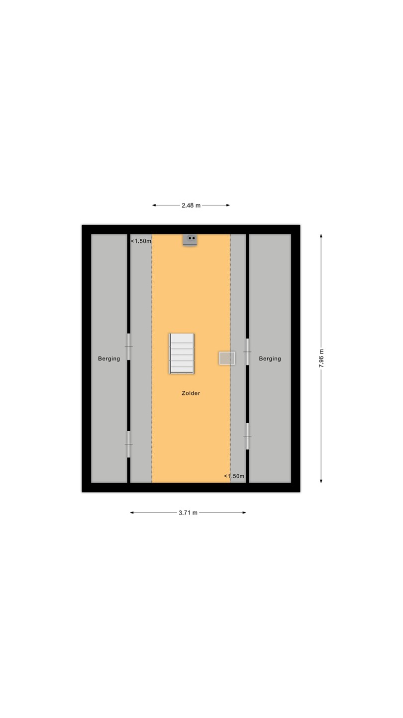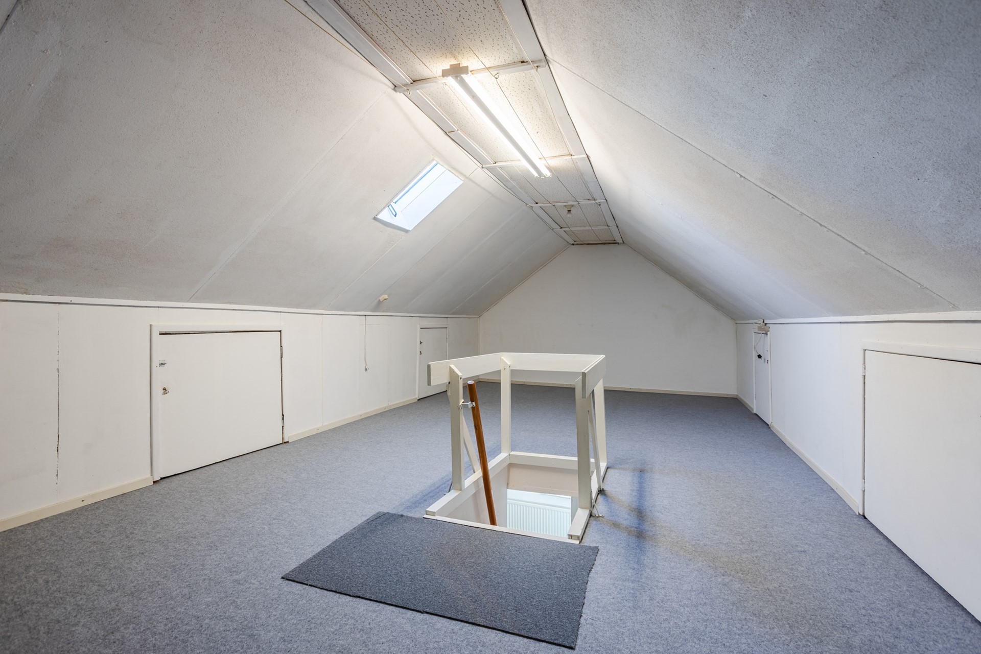 Bereikbaar met vaste trap naar afgetimmerde zolderruimte met opstelplaats voor de cv-ketel en bergruimte achter de knieschotten.