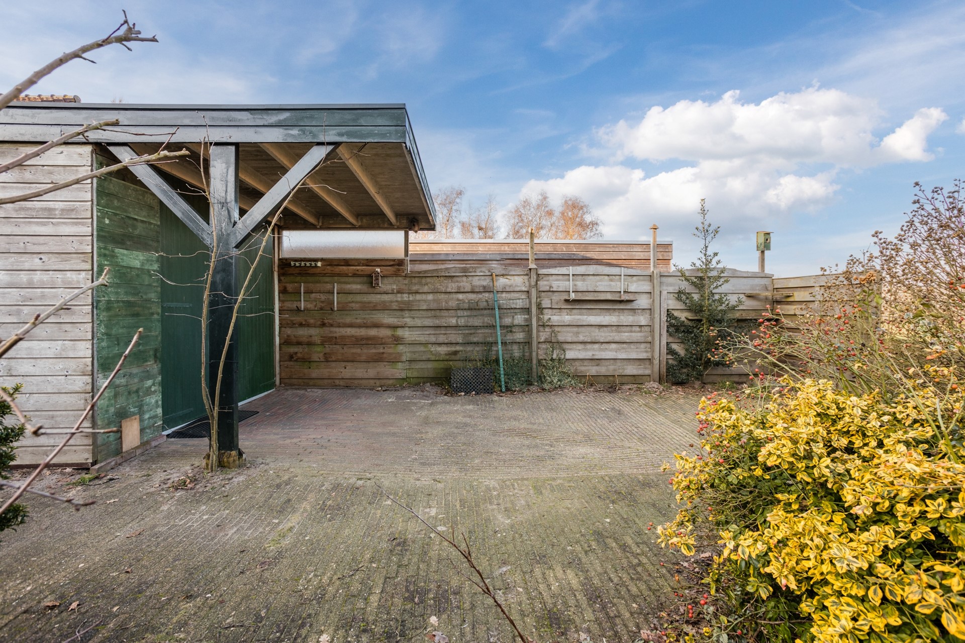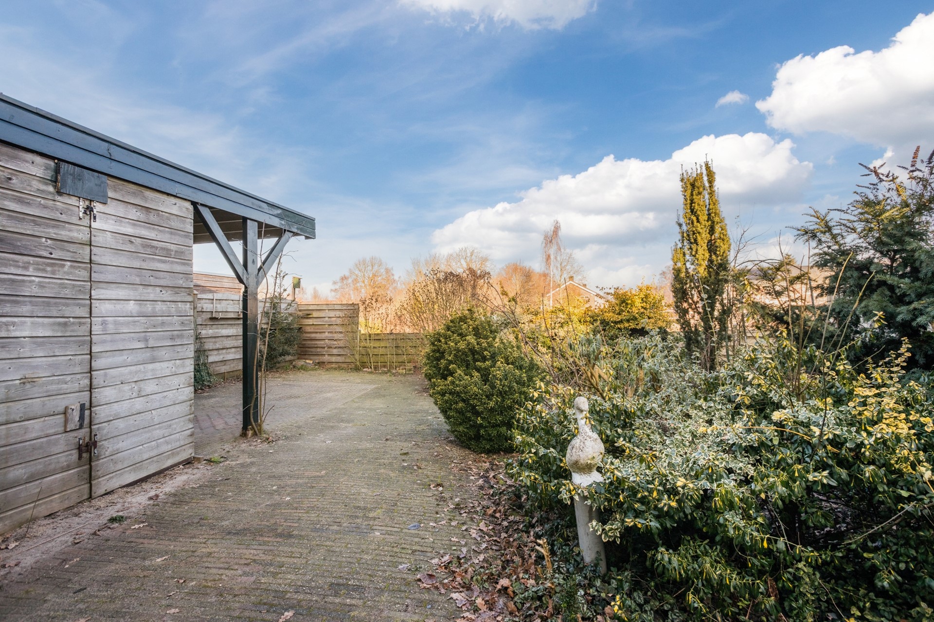 Buiten beschikt de woning over een voor-, zij- en achtertuin, waarbij de voor- en zijtuin in 2024 volledig opnieuw zijn aangelegd door een hovenier. Daarnaast is er een aangebouwde garage, een achtergelegen schuurruimte en een grote kelderruimte die via buitenom bereikbaar is