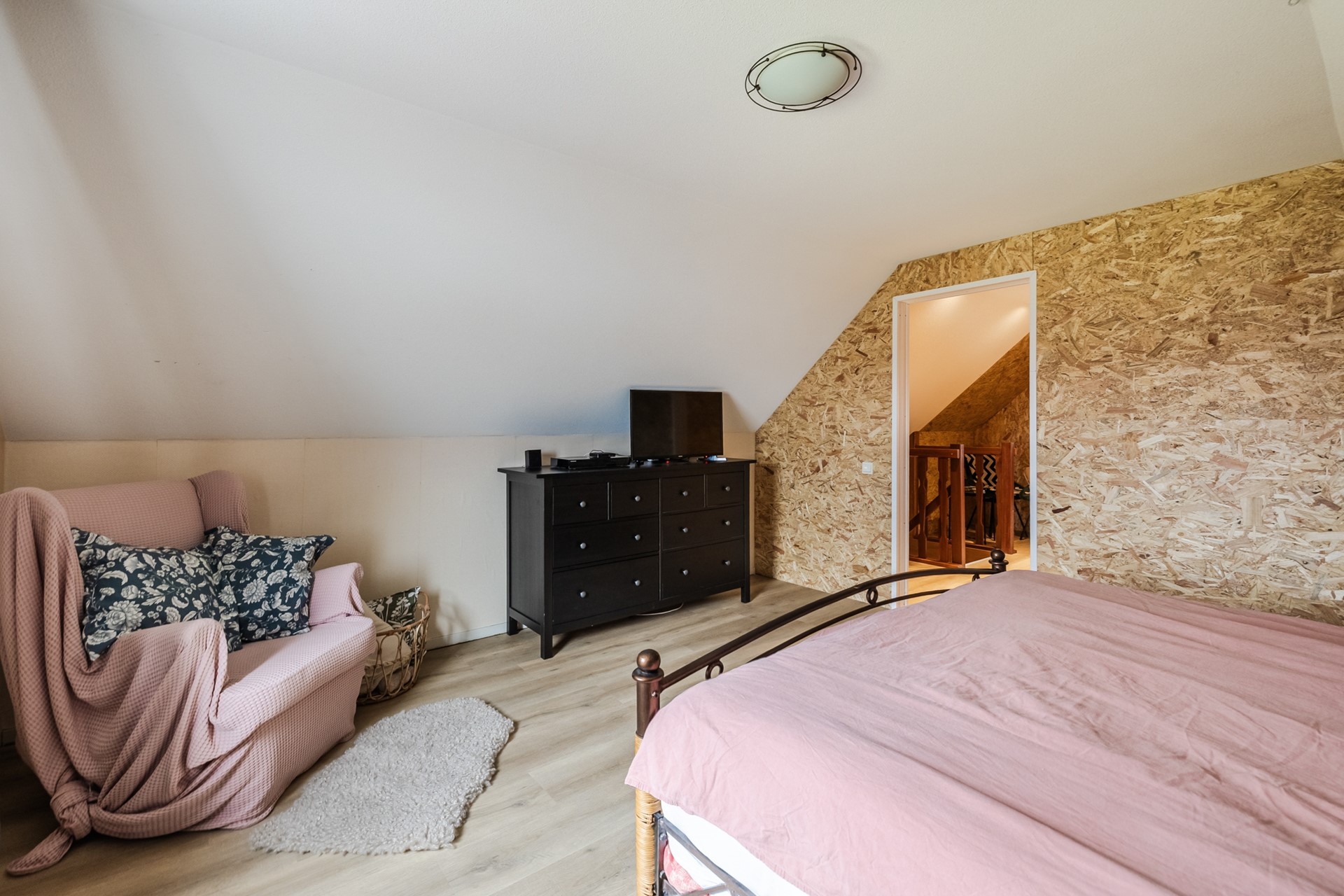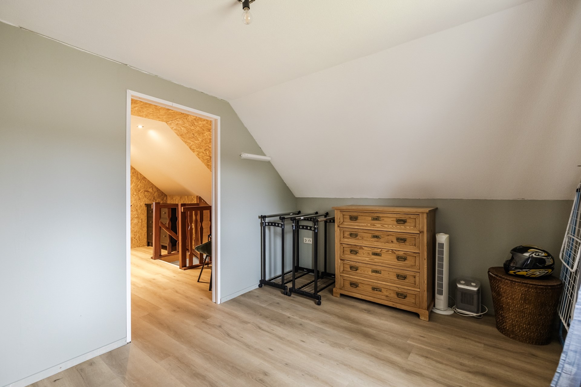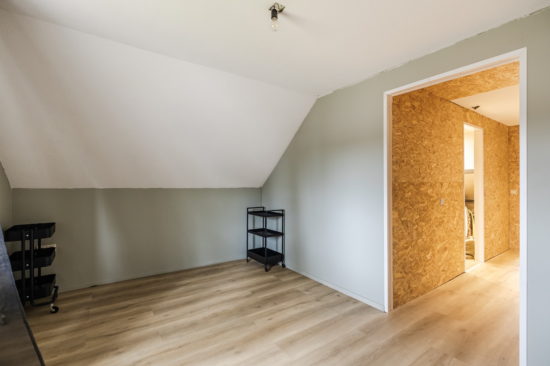 Op de eerste verdieping zijn twee slaapkamers met rolluiken en een ruime overloop met inloopkast. Daarnaast is er nog extra bergruimte op zolder.