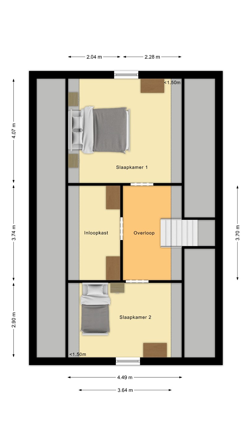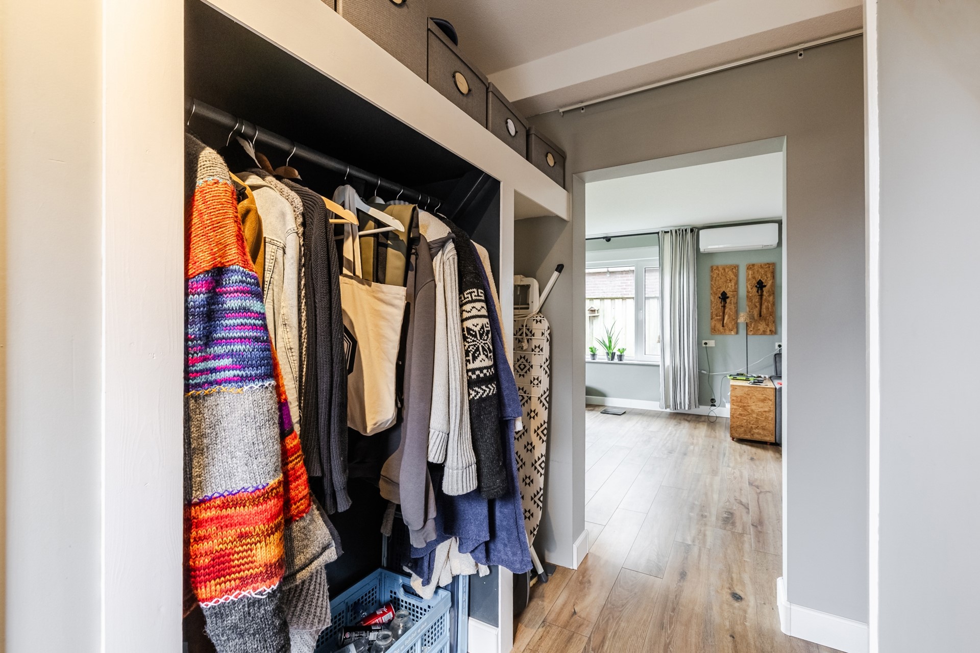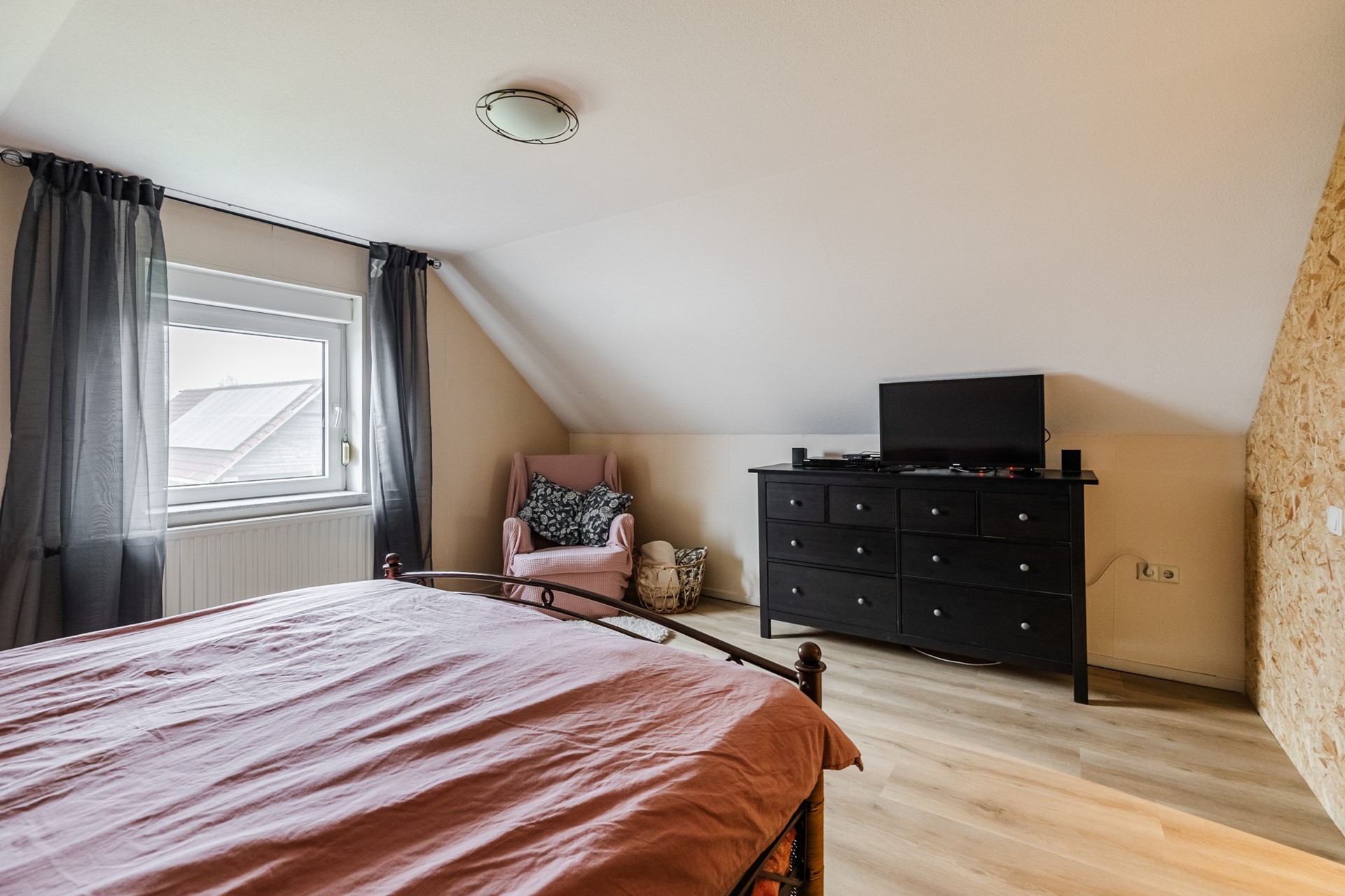 Op de eerste verdieping zijn twee slaapkamers met rolluiken en een ruime overloop met inloopkast. Daarnaast is er nog extra bergruimte op zolder.